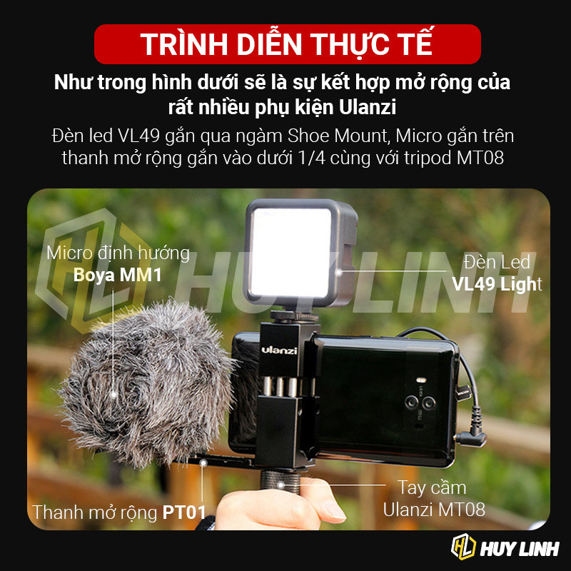 - Ulanzi ST-02S có thể xoay 2 chiều vừa có thể gắn mic, gắn đèn led hoặc monitor, thanh chuyển tiện dụng.