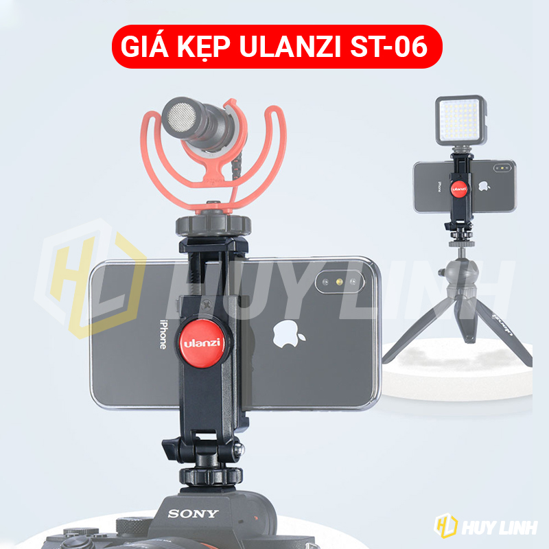 - Ulanzi ST-06 lad giá kẹp giúp gắn điện thoại thông minh vào chân máy, tay cầm, tripod hoặc các bộ combo ghi hình.