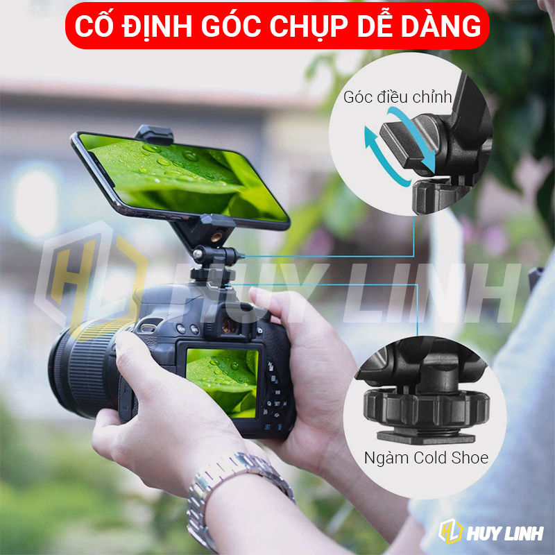 - Kẹp điện thoại ST-06 xoay 360 độ đễ dàng xoay điện thoại chụp ngang hoặc dọc mà không phải lấy điện thoại ra