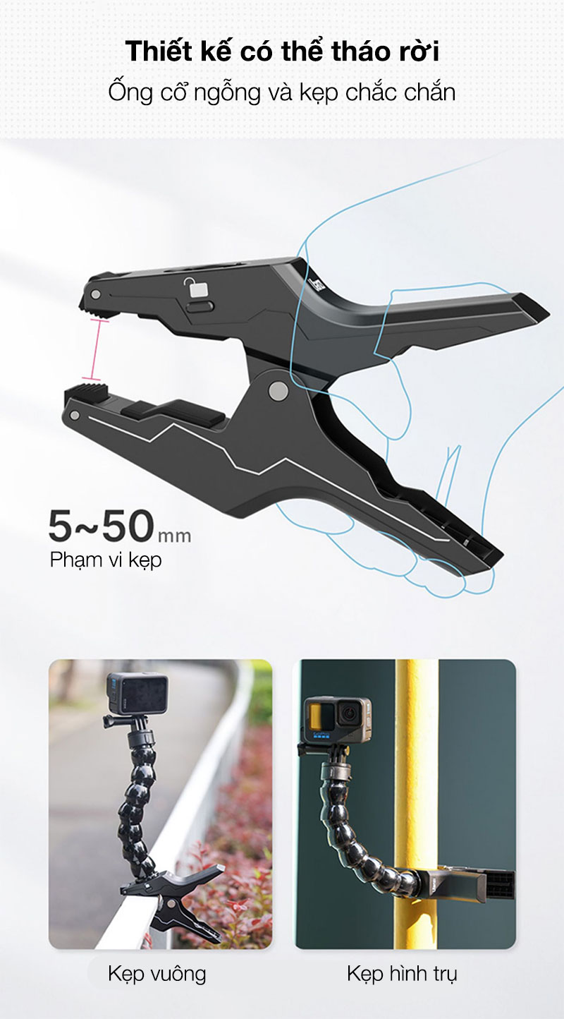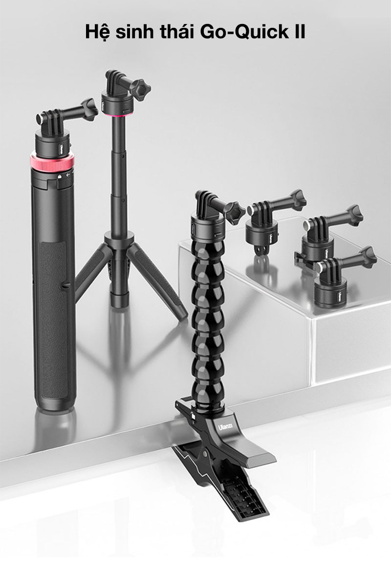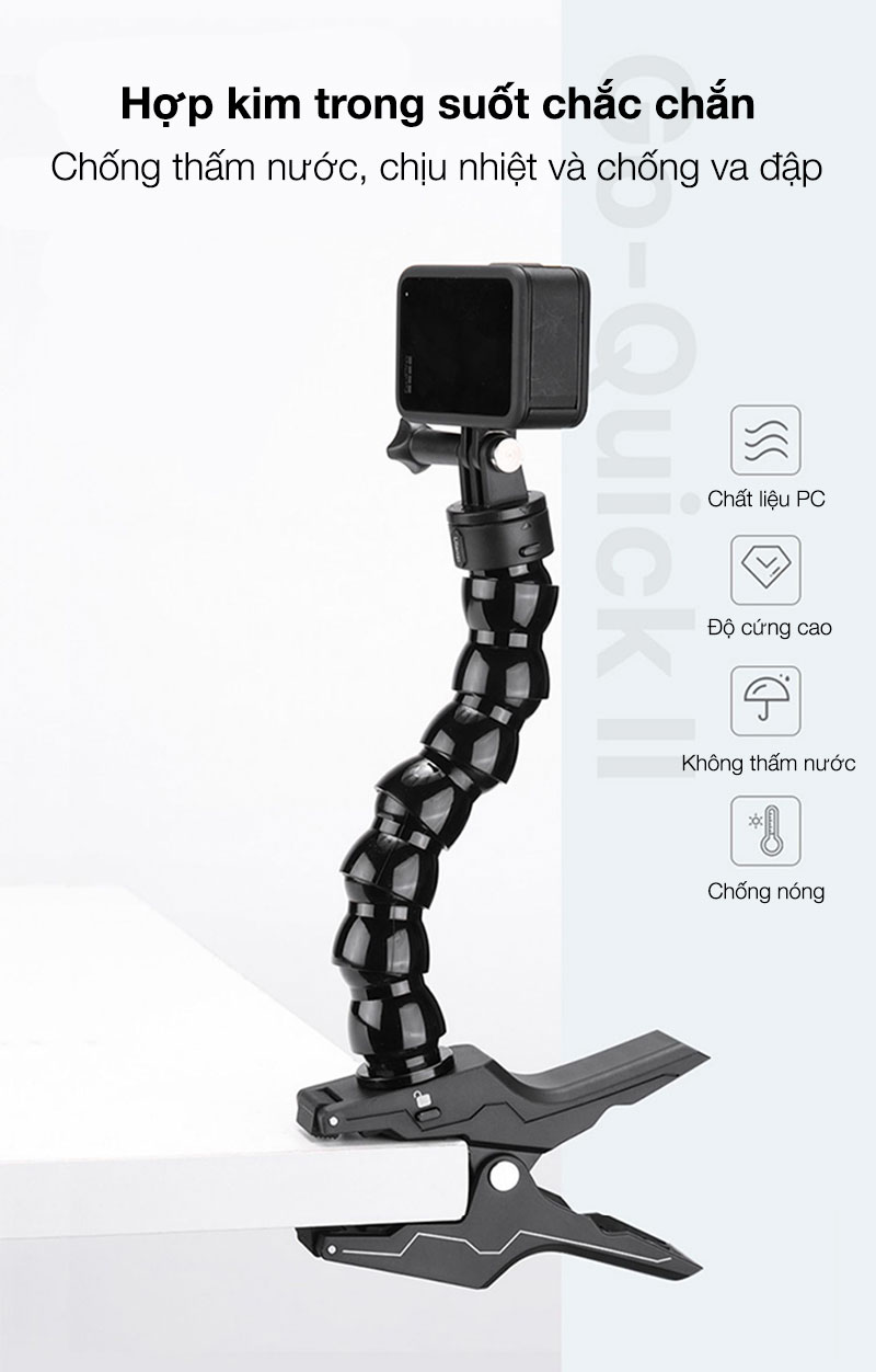 - Thiết kế có thể tháo rời: Kẹp và cổ ngỗng có thể tháo rời, cả hai đều được kết nối bằng Go Quick II Mount, có thể được sử dụng riêng.