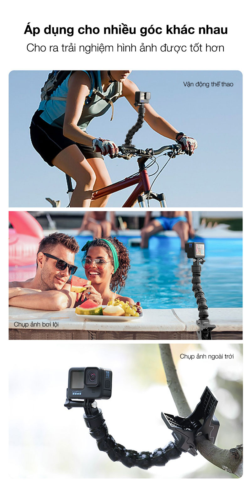 - Tương thích với GoPro / DJI / insta360 và các camera hành động khác.