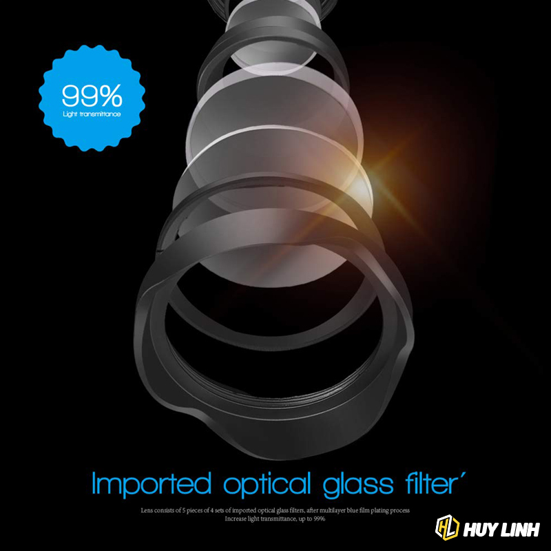 - Lớp phủ ống kính: ar băng thông rộng nhiều lớp