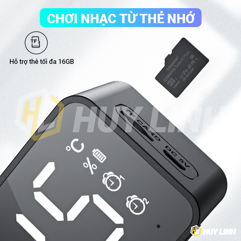 - Thiết kế hai đồng hồ báo thức, bạn có thể cài nhạc từ thẻ nhớ làm nhạc chuông báo thức, thiết kế độc đáo, thiết lập bài hát yêu thích, cho phép bạn báo thức bằng những bản nhạc tuyệt vời.
