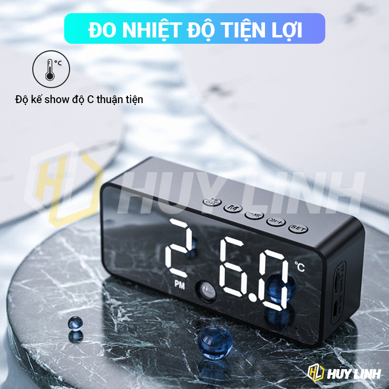- Âm thanh từ loa to rõ, chắc âm, bass lớn. Khi sở hữu sản phẩm này vừa có một chiếc loa nhỏ gọn, một chiếc đồng hồ hiển thị thời gian, nhiệt độ và cả một chiếc gương để trang điểm. Đây là món đồ không thể thiếu cho các tín đồ âm nhạc thời đại 4.0.