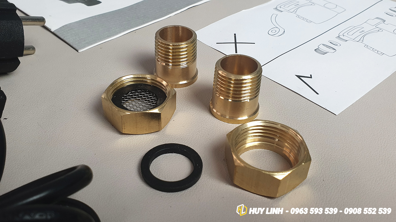 - Cánh bơm bằng đồng, được thiết kế cân bằng tâm, giúp máy chạy êm, chống rung và chống ồn.