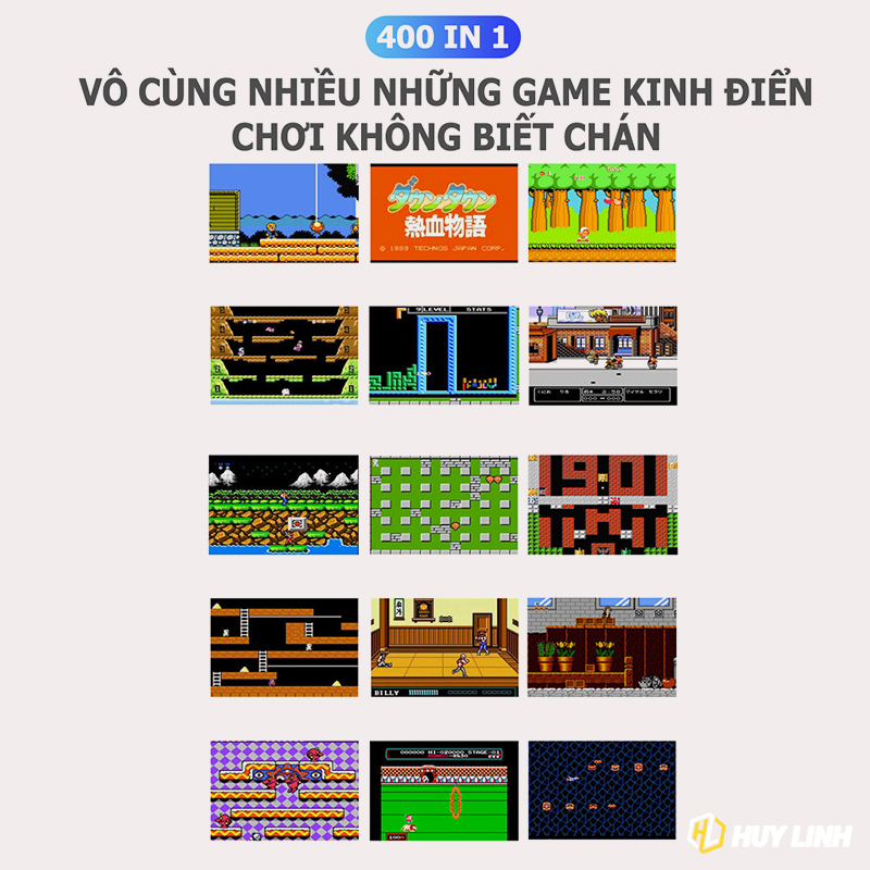 - Tích hợp sẵn 400 trò chơi NES huyền thoại: Mario, Contra...