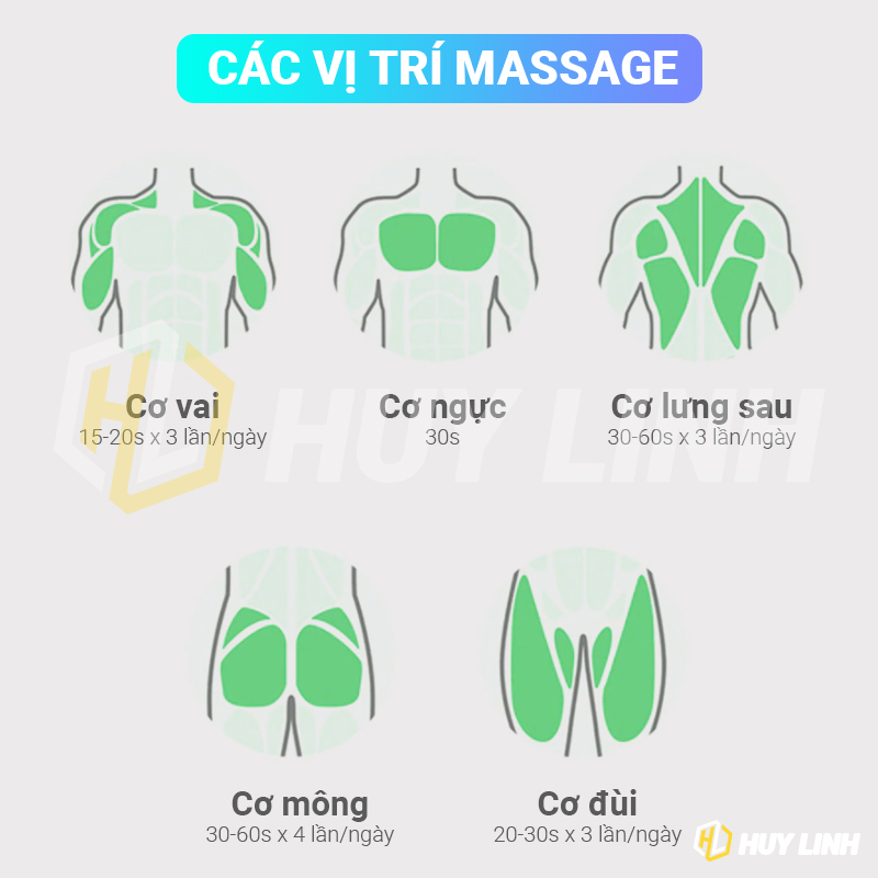 - Đầu massage phẳng: Thích hợp cho vùng cơ có diện tích lớn như bắp tay, bắp đùi, bắp chân