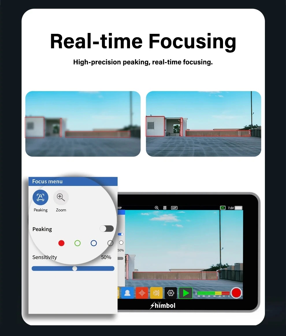 - Màn hình có độ sáng cao 2000 nits giúp việc giám sát quay phim ngoài trời không bị ảnh hưởng bởi ánh sáng mạnh, và hình ảnh quay rõ ràng hơn.