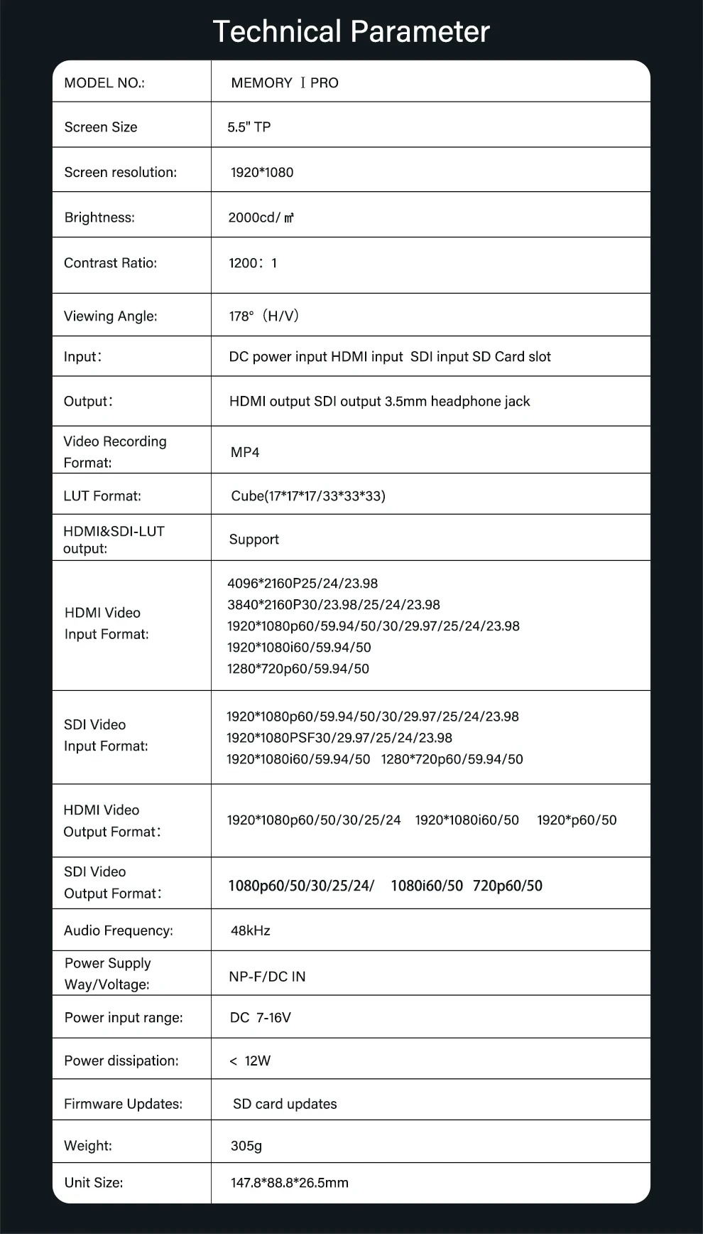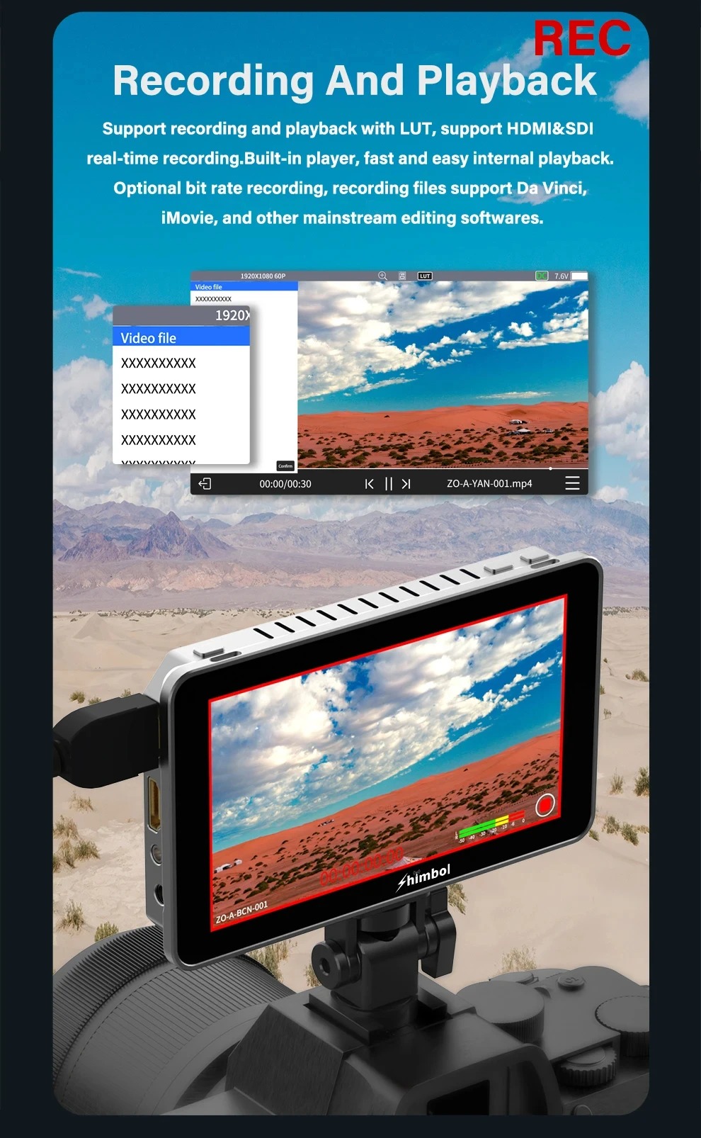 - Hỗ trợ ghi âm và phát lại với LUT, hỗ trợ ghi âm HDMI & SDI trong thời gian thực. Đầu phát tích hợp, phát lại bên trong nhanh chóng và dễ dàng