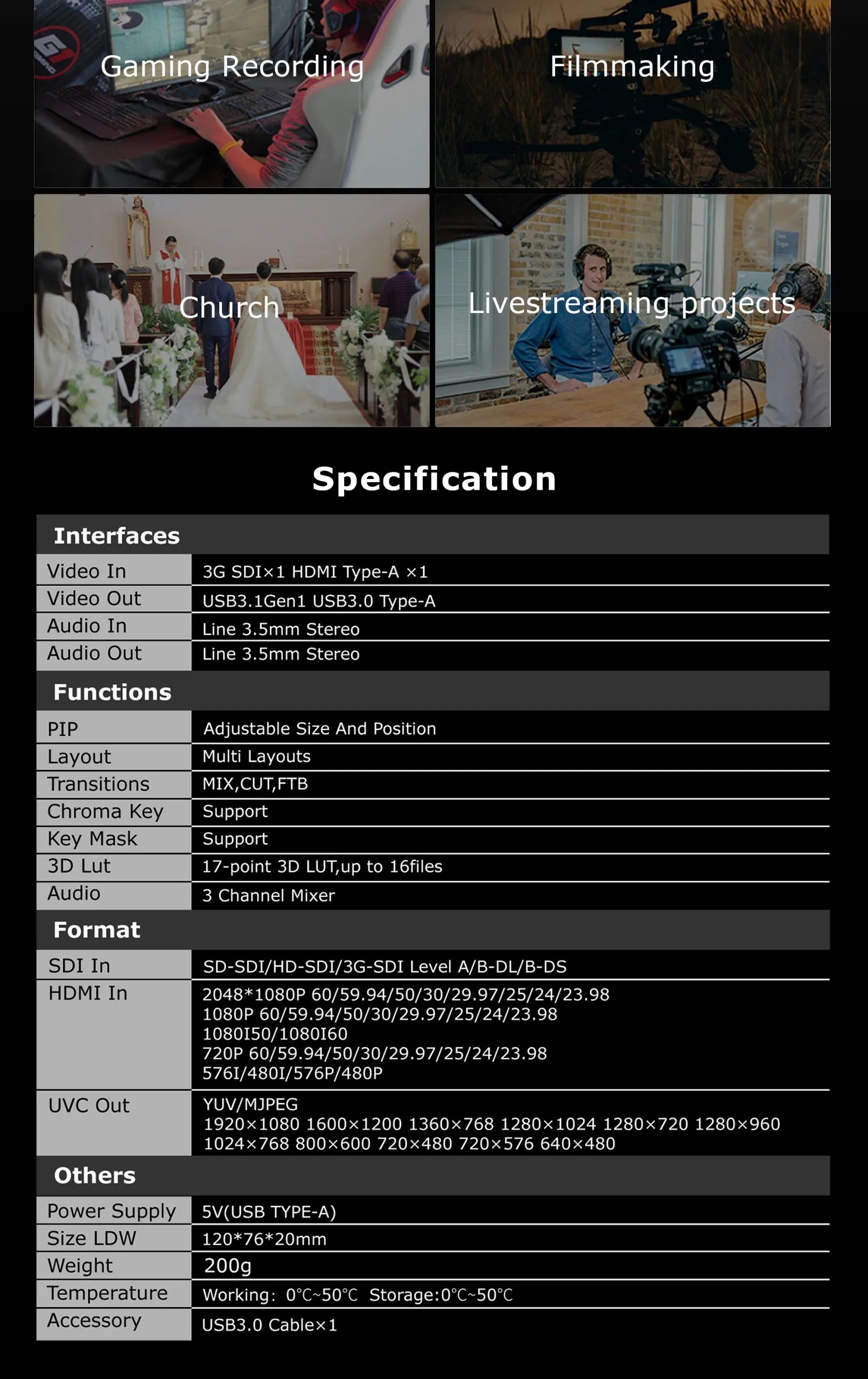 - Video đầu ra: USB3.0 (TypeA)/USB3.1Gen1
