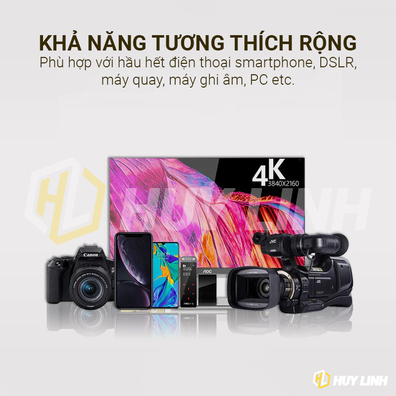- Có thể kết hợp với nhiều loại điện thoại, máy ảnh, các thiết bị ghi âm khác nhau, rất thích hợp cho người làm phim youtuber, hoặc các streammer.