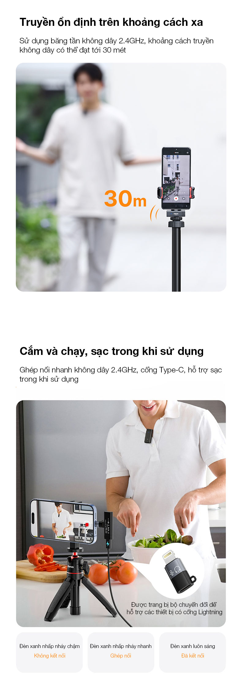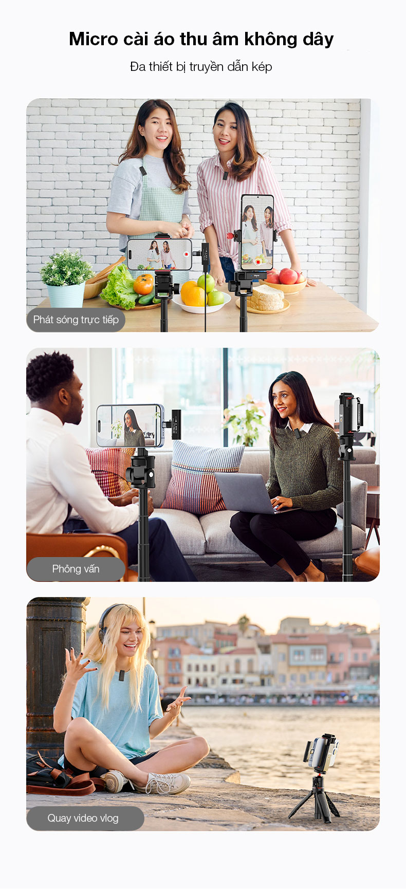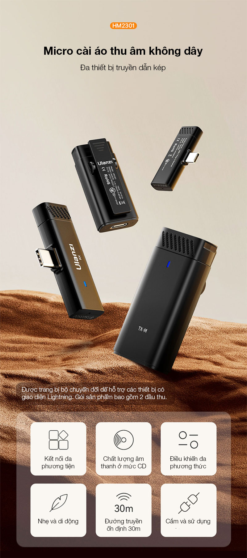 - Micro cài áo thu âm không dây đa thiết bị truyền dẫn kép