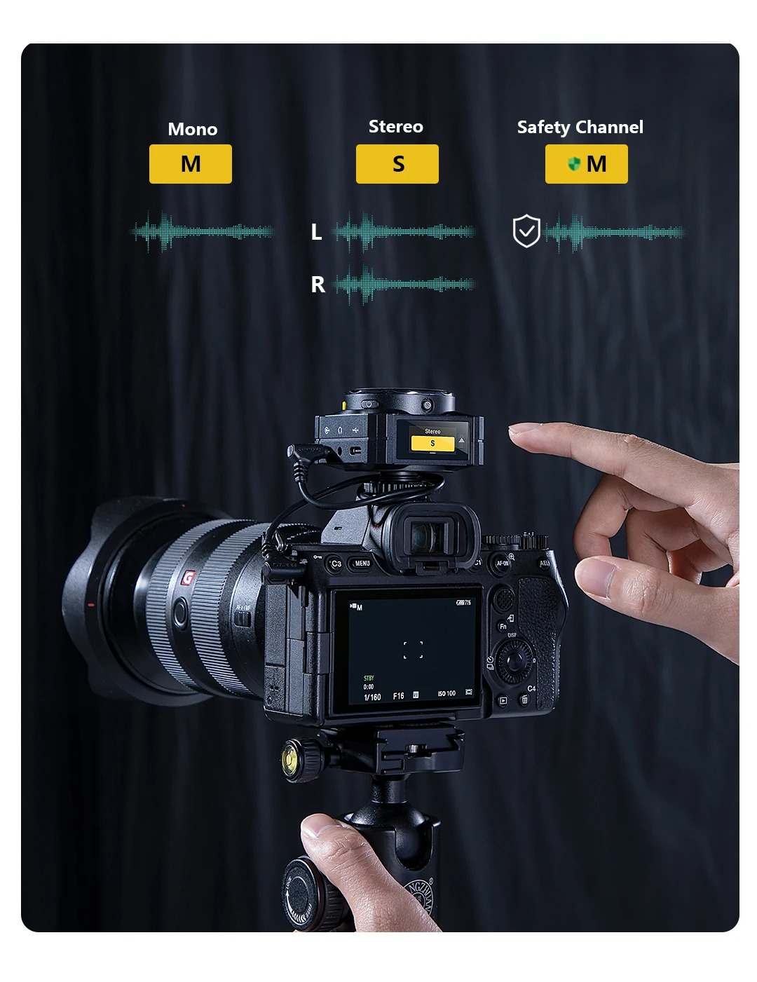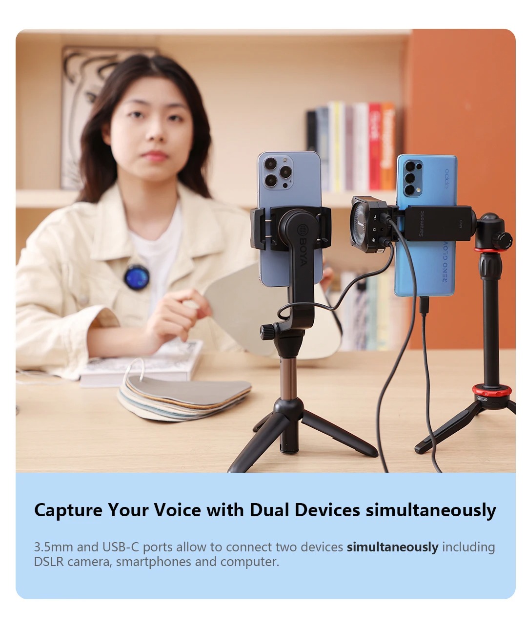 - Thu âm đồng thời từ 2 thiết bị khác nhau qua 2 cổng cắm USB-C và 3.5mm.