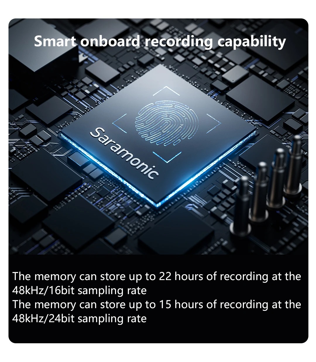 - Tích hợp ghi âm với bộ nhớ 8G lên đến 22 giờ (16bit).