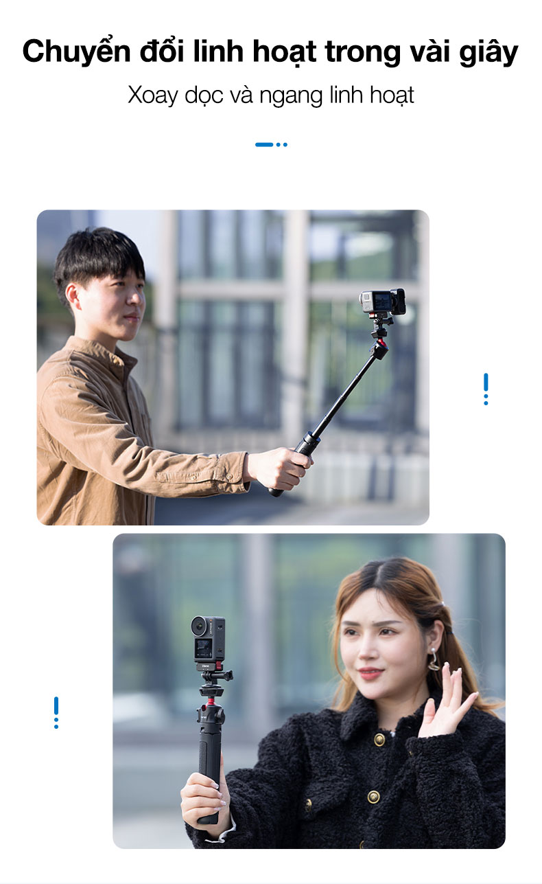 - Chuyển Đổi Chế Độ Dọc & Ngang Dễ Dàng: Chỉ cần tháo máy ảnh ra, xoay và nhấn, bạn có thể nhanh chóng hoàn thành việc chuyển đổi.