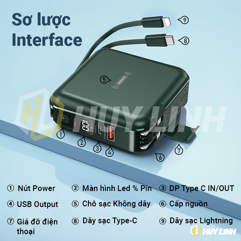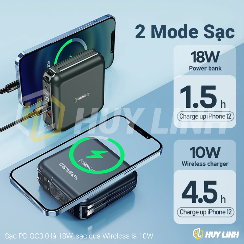 - Remax RPP 145 có tích hợp sạc Wireless tiện lợi