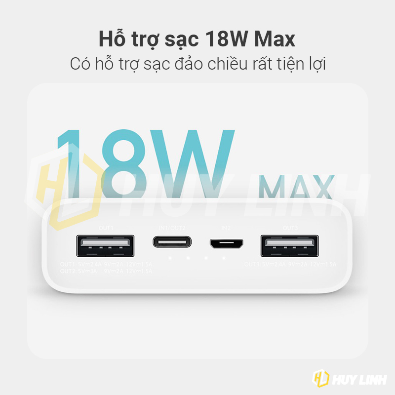 - Hỗ trợ sạc nhanh Quick charge 3.0 và sạc đảo chiều PD (công suất lên đến 18W)