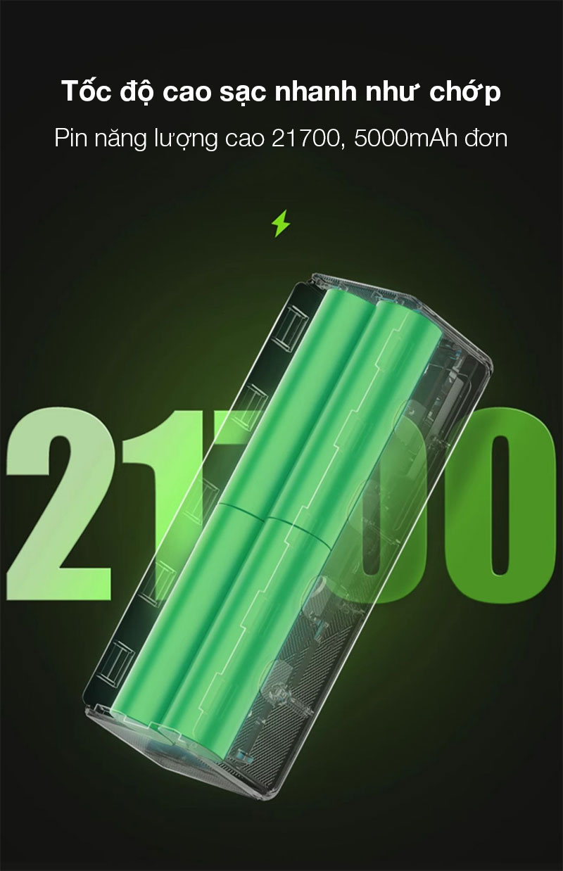 - Pin năng lượng cao 21700, 5000mAh đơn