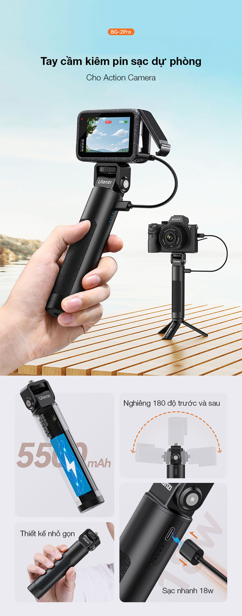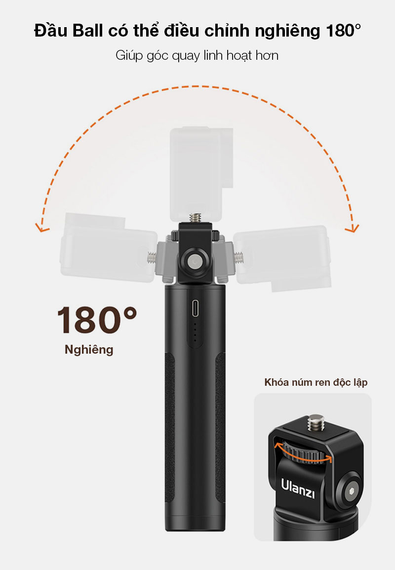 - Gimbal có thể điều chỉnh nghiêng 180°