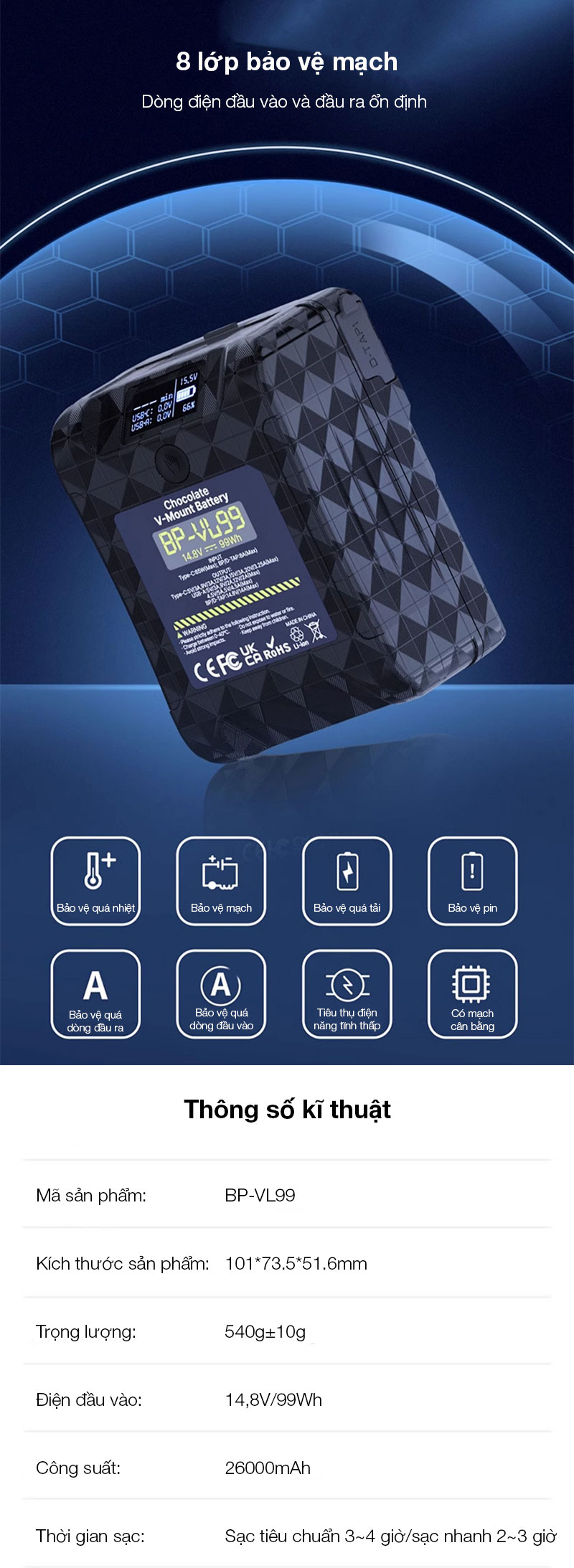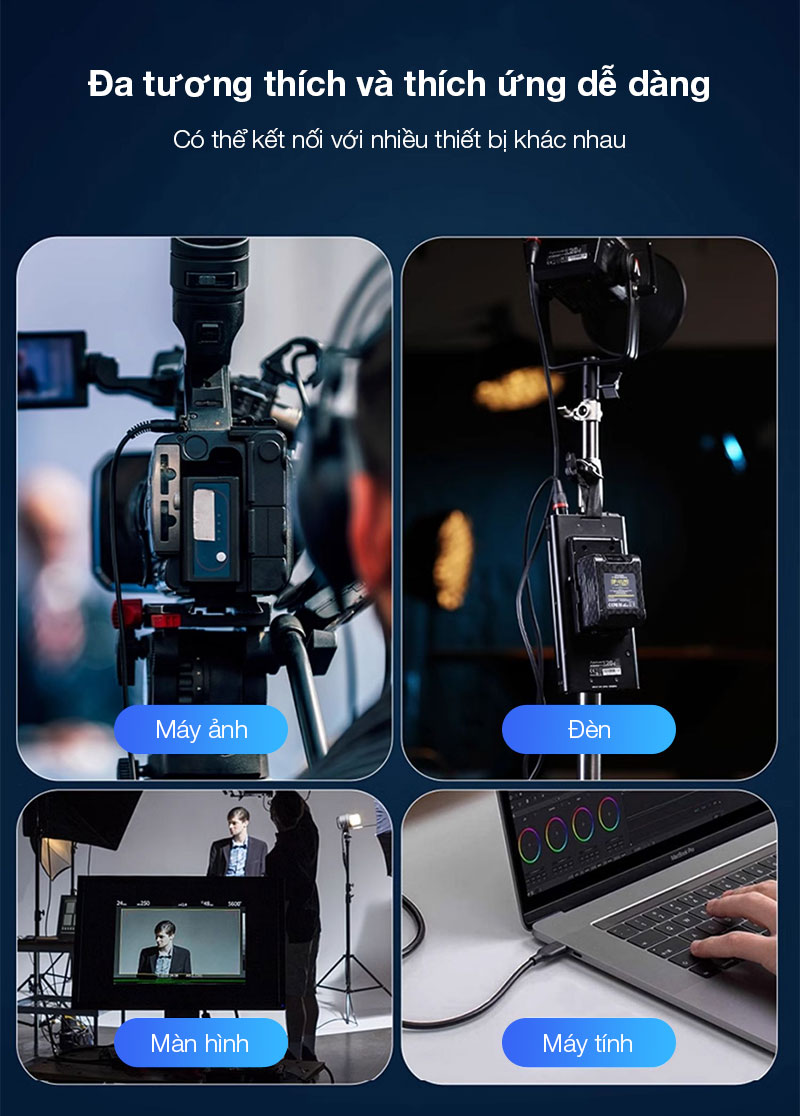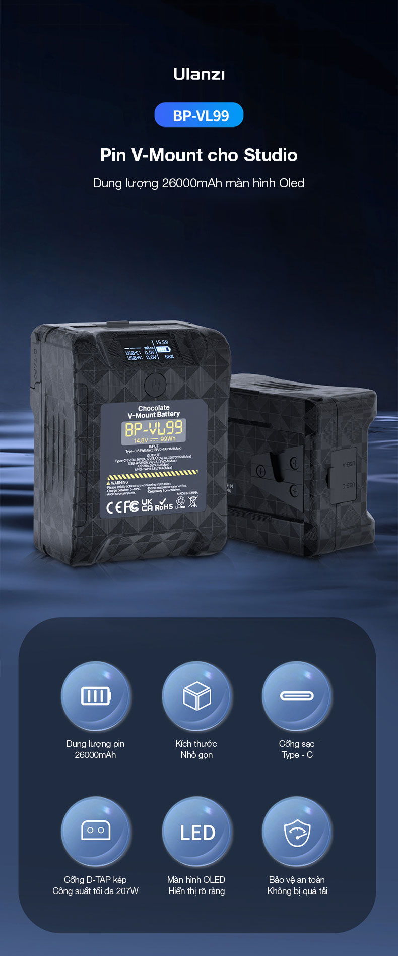 - Sản phẩm tương thích với: Sony HDCAM, XDCAM, các thiết bị dùng pin V Mount