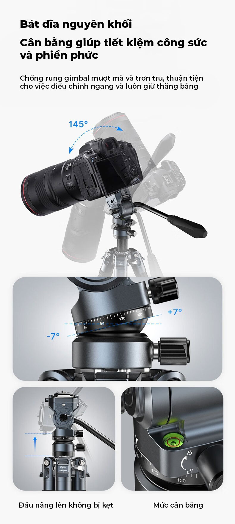 - Tải trọng đầu bi: 3 kg (* Độ nảy động của gimbal là 1,5kg)