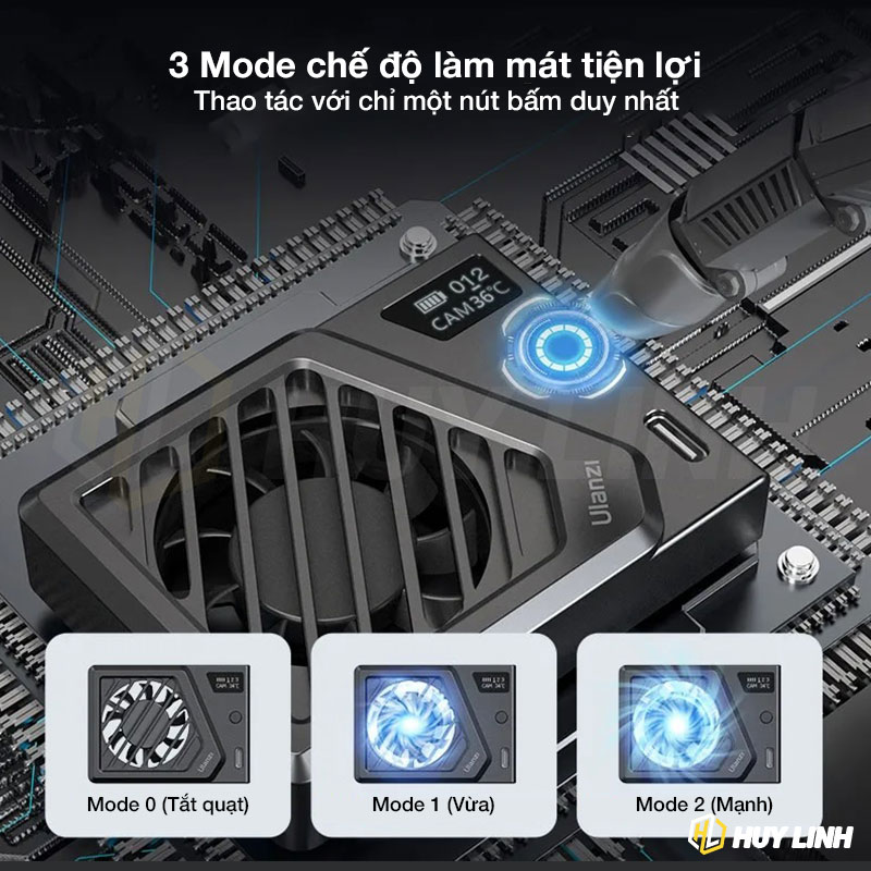 - Ba chế độ hoạt động: Quạt tốc độ cao với hoạt động ít tiếng ồn.