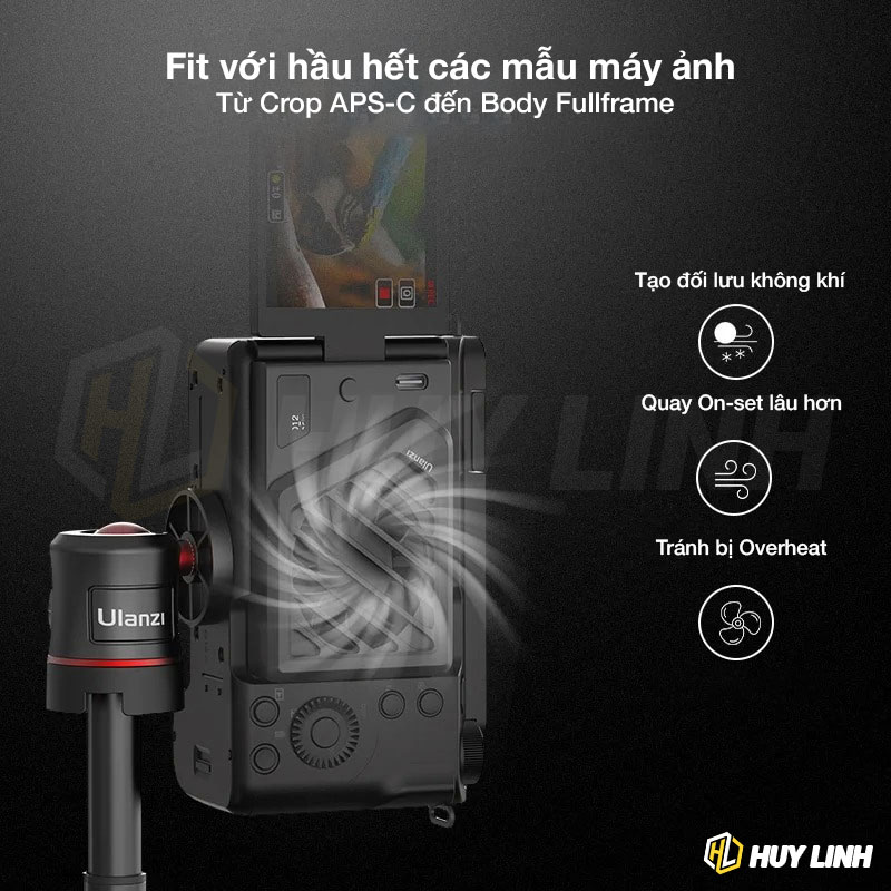- Tương thích: Sony ZV-E1 / ZV-E10L / A7M4 / A7S3 / A7C / FX30 / A6700, Canon R8 / R7 / R6 Mark Il / R5 / 90D, FUJIFILM XS10 / XT4 / X-H2S / X-S20, v.v. Quạt Làm Mát Máy Ảnh Ulanzi Cho Sony / Canon / FUJIFILM