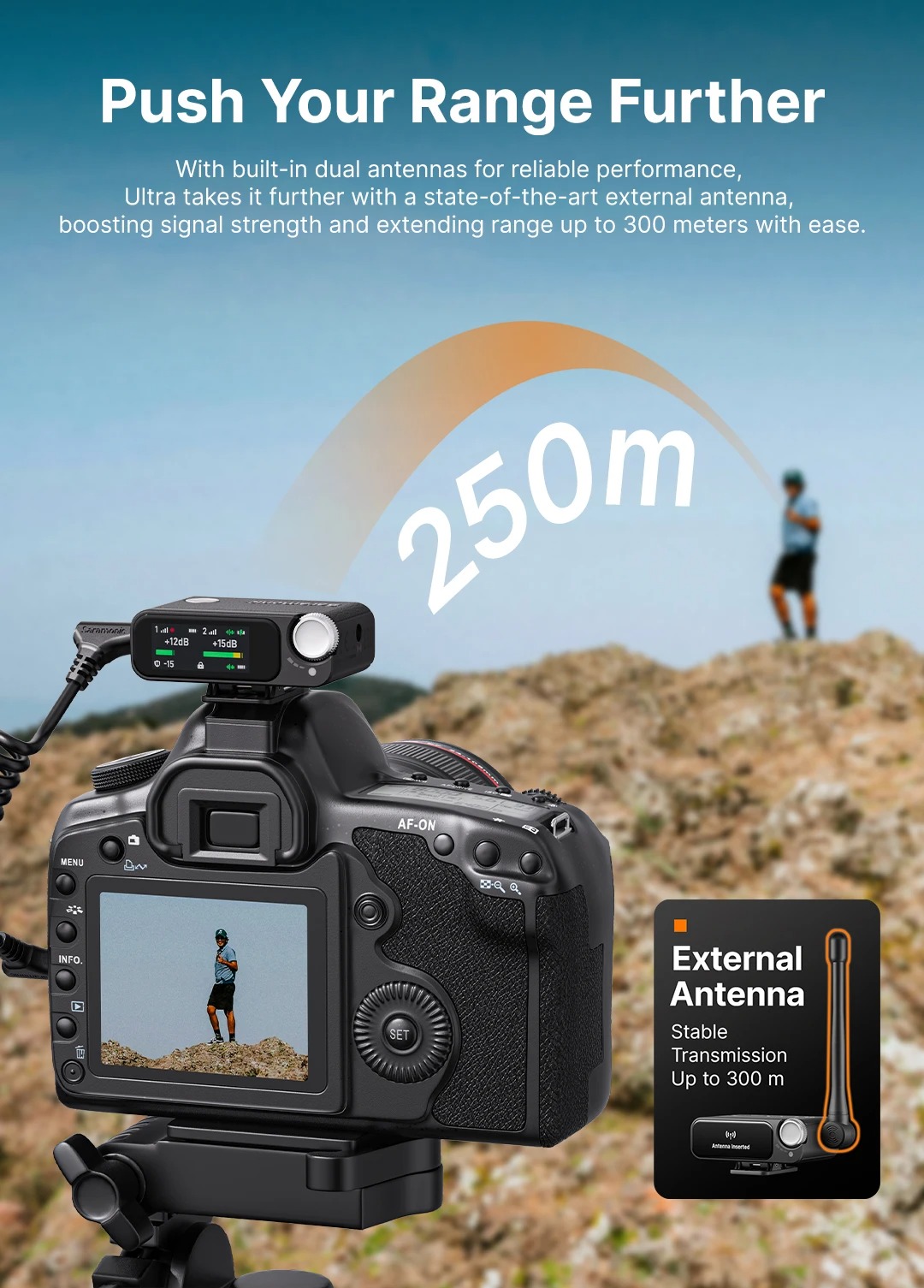 - Màn hình điều khiển cảm ứng AMOLED cho phép điều chỉnh dễ dàng cho Transmitter tăng mic, khử nhiễu và chế độ ghi âm trực tiếp.