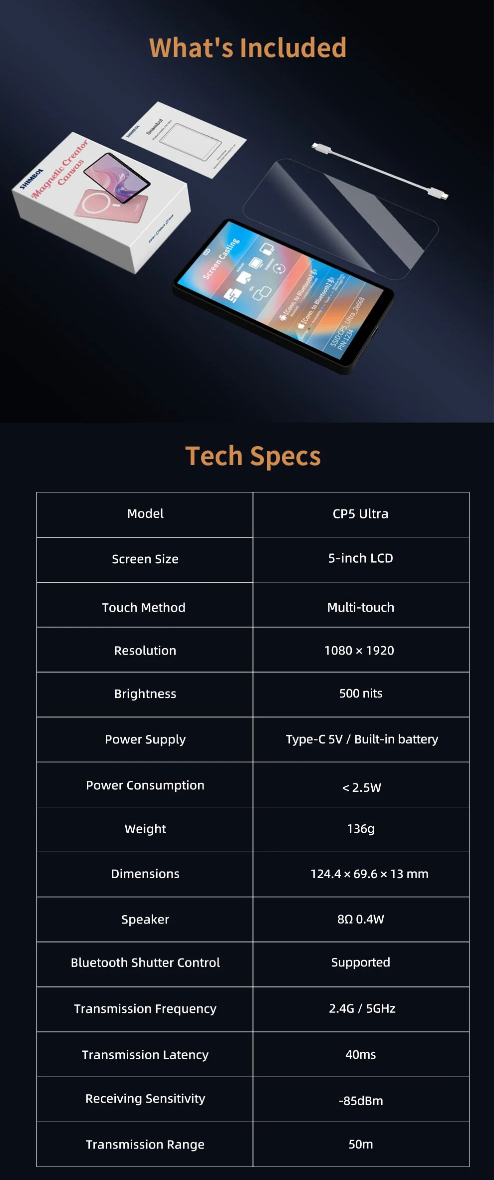 - Kích thước Màn hình: Màn hình LCD 5 inch