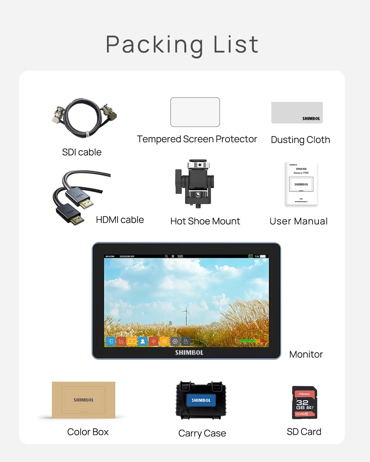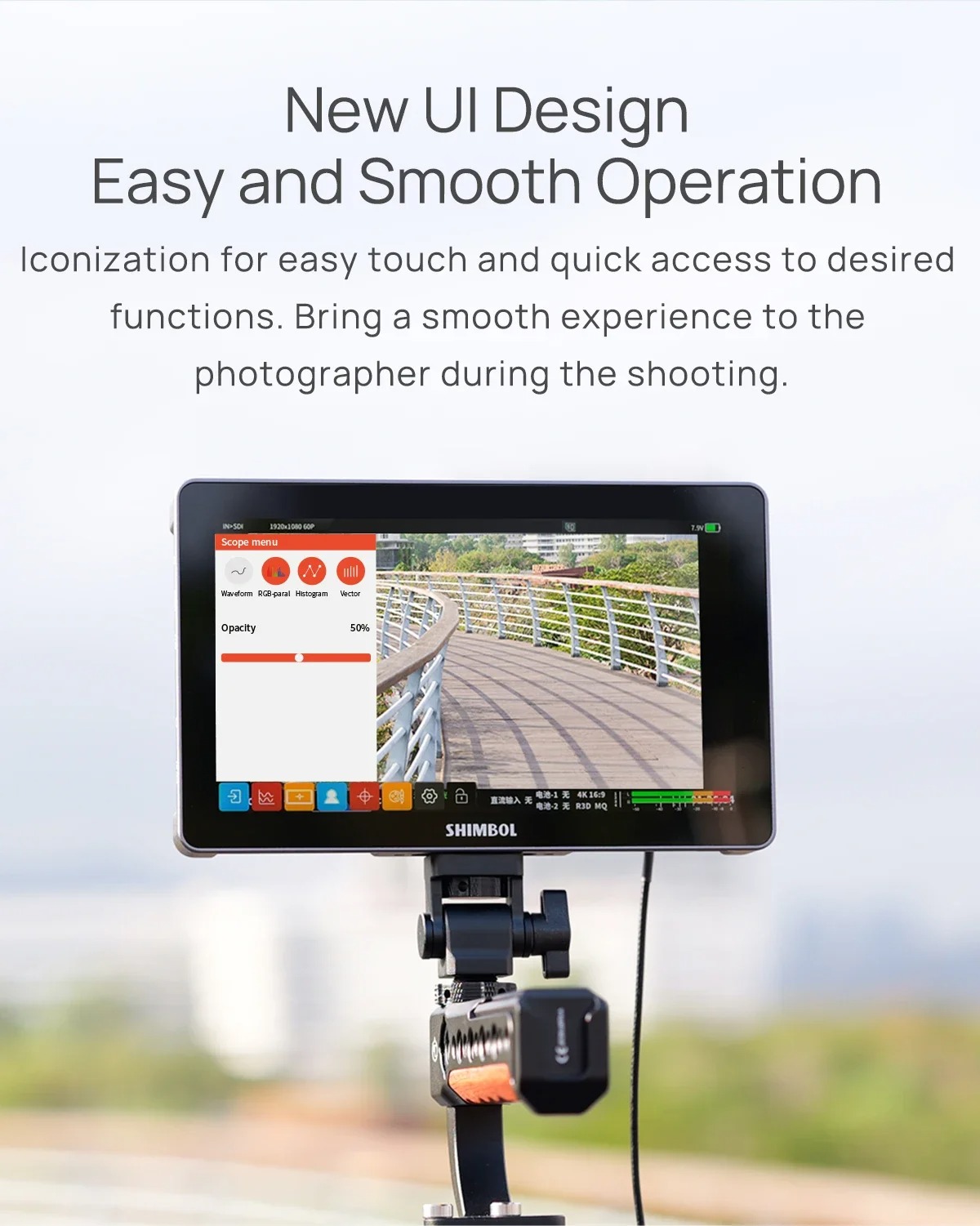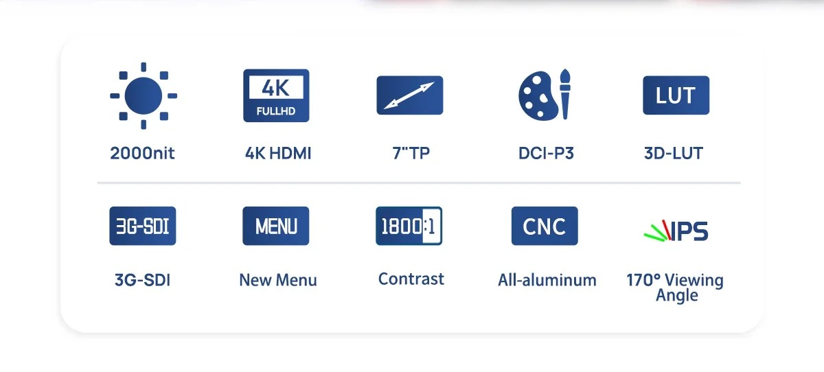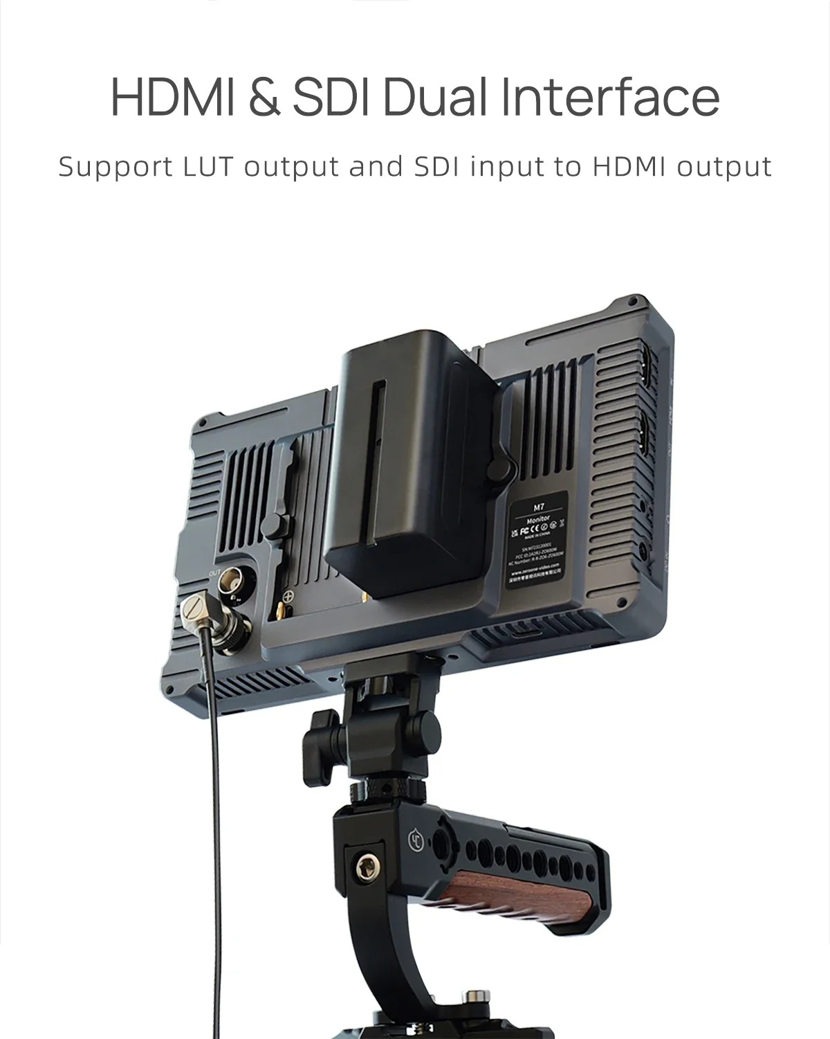 - Giao diện đầu vào: DC in, SDI input, HDMI input, khe cắm thẻ SD