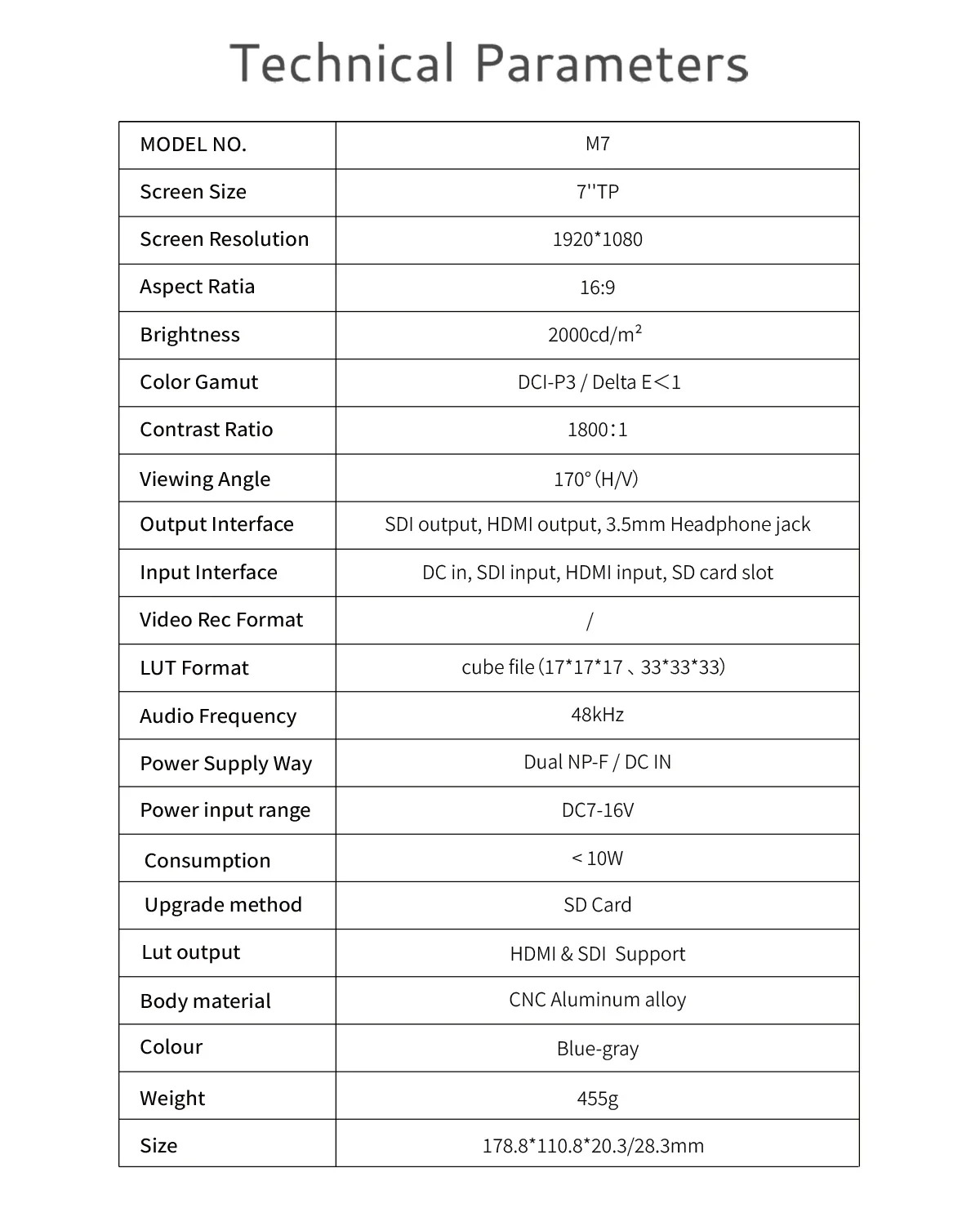 - Màn hình LCD 7 inch Độ phân giải Full HD