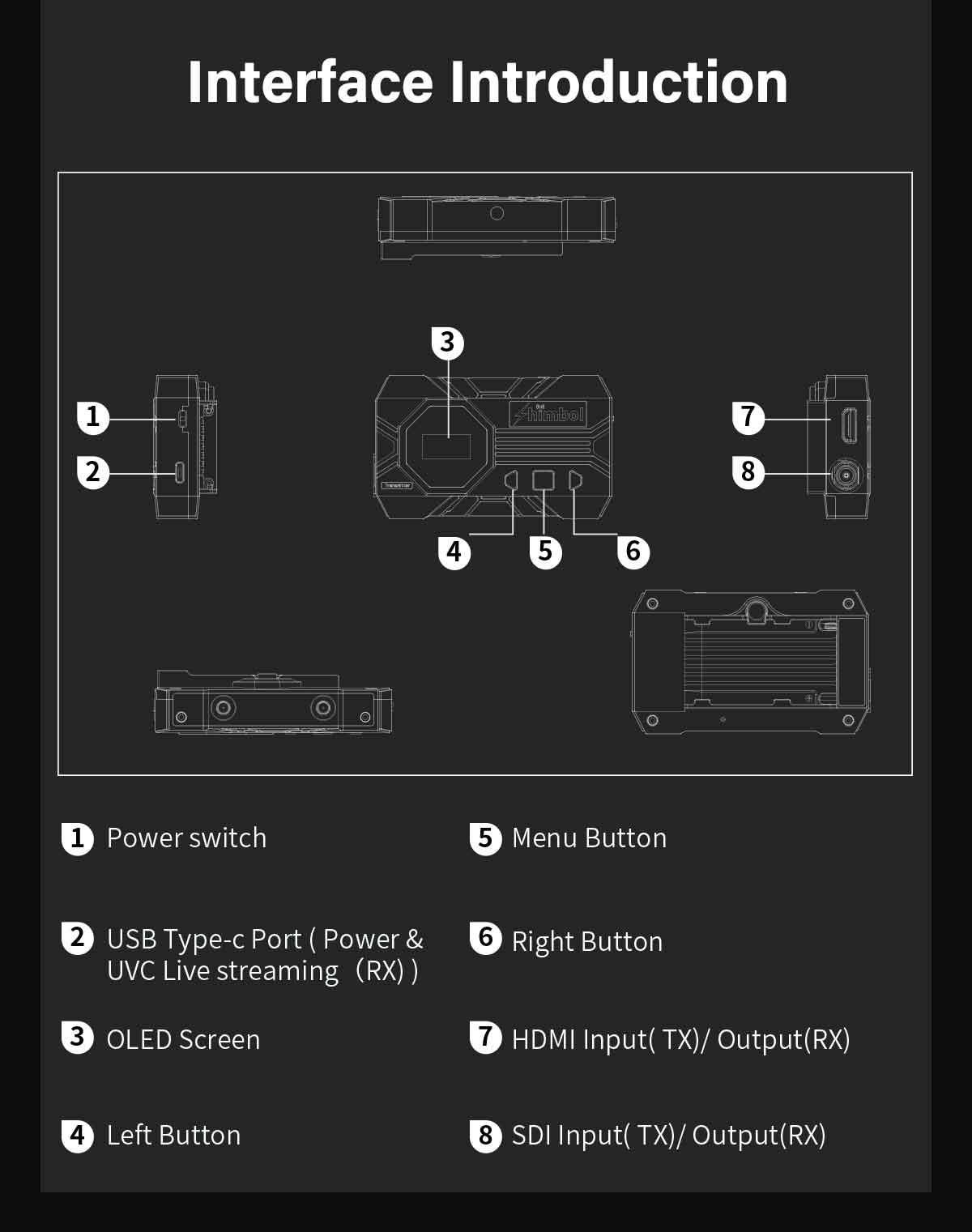 + Bộ phát sóng (Transmitter:) 1x BNC (3G-SDI) Input