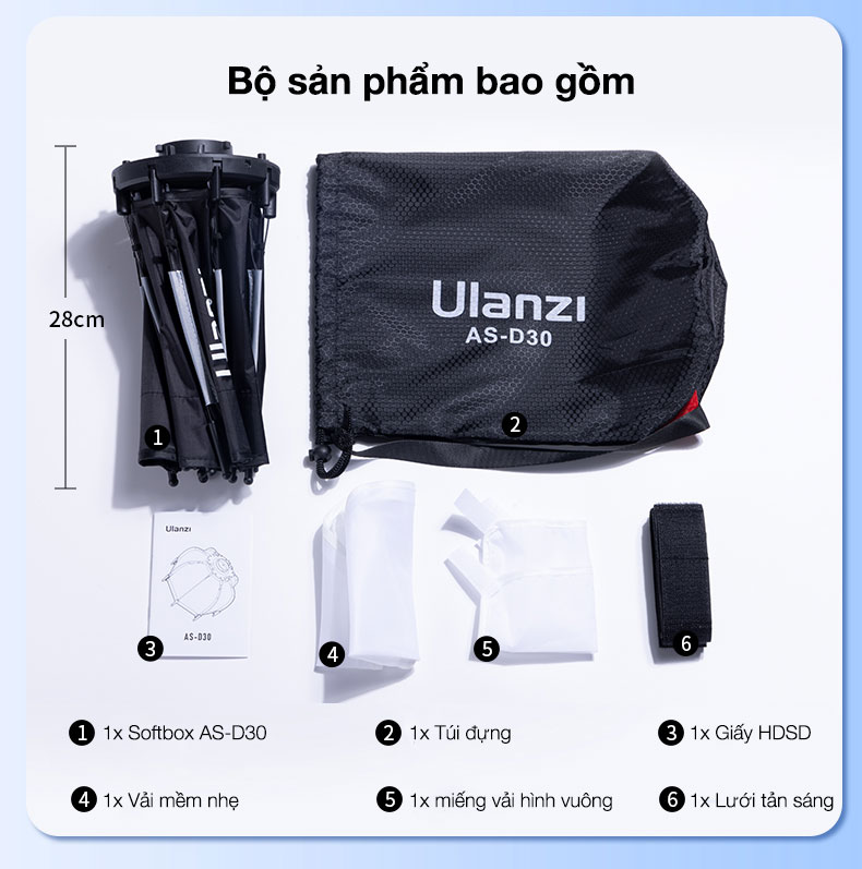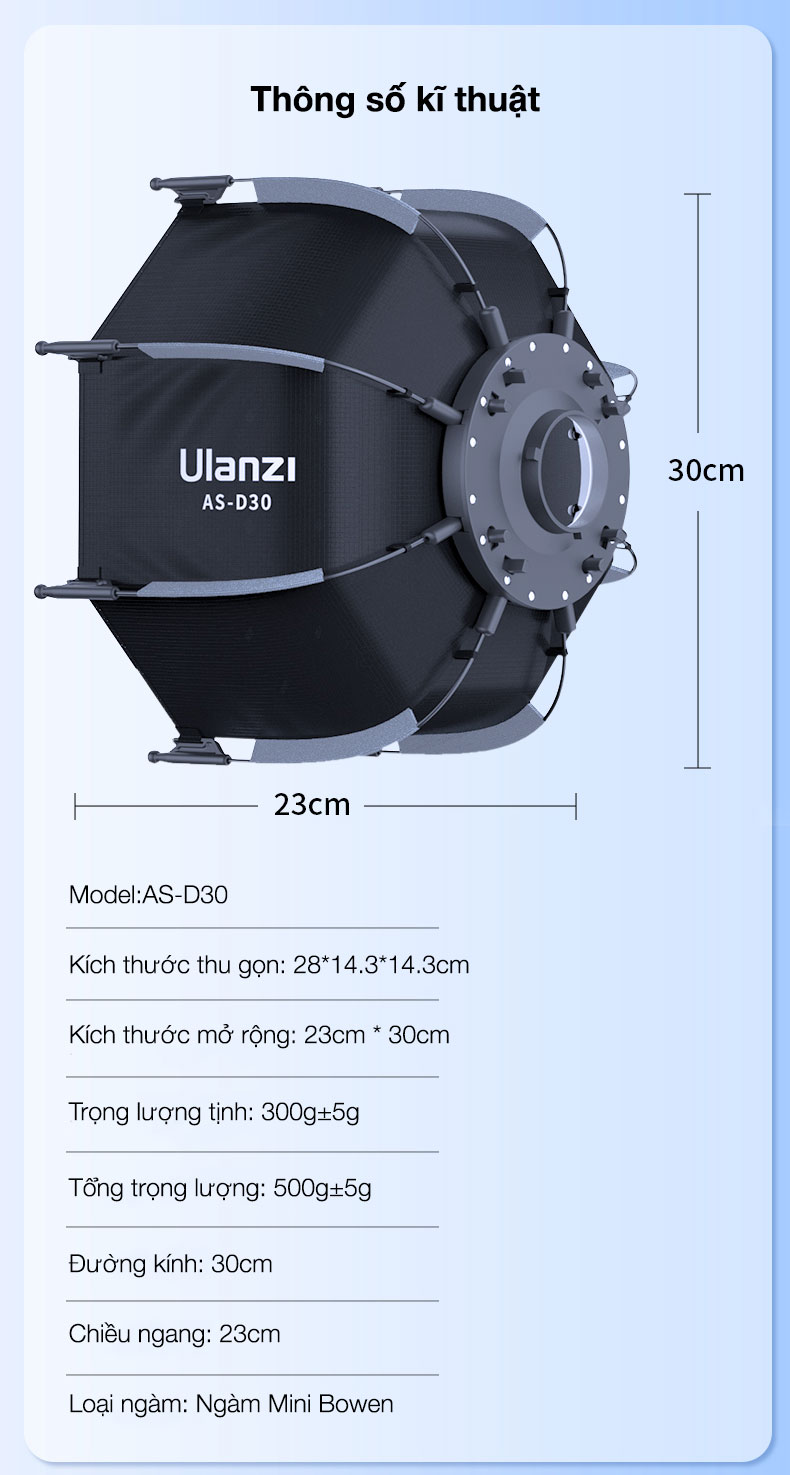 *** Lưu ý: Ulanzi AS-D30 30cm ngàm Mini Bowen dùng cho đèn Ulanzi LT028 và Ulanzi LT005