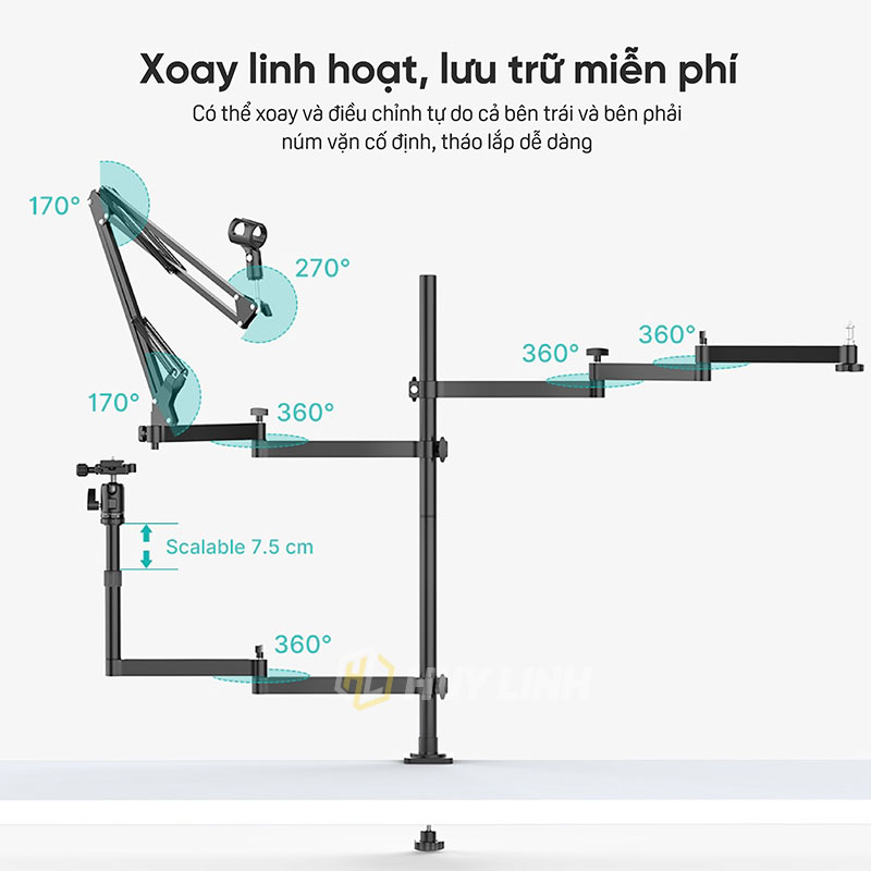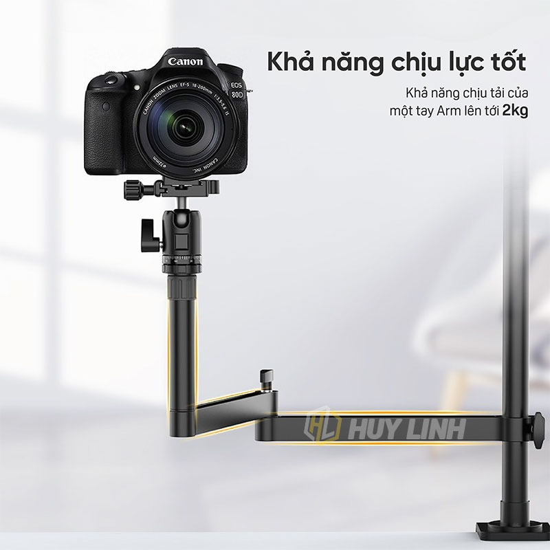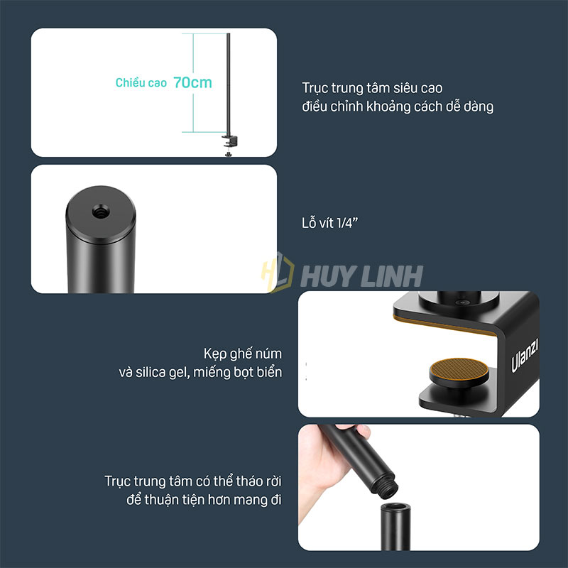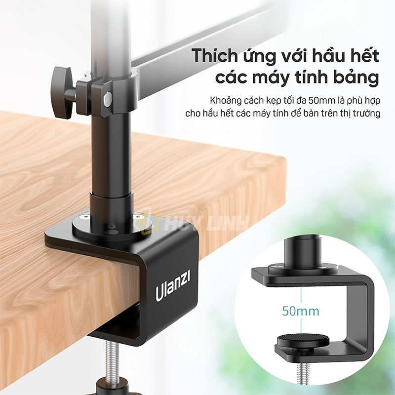 - Giá đỡ kẹp bàn setup studio Ulanzi phù hợp để làm bánh, chế tạo, bài học trực tuyến, hiển thị tài liệu, phát trực tiếp, quay video và tạo các cảnh video/hình ảnh từ trên xuống khác.