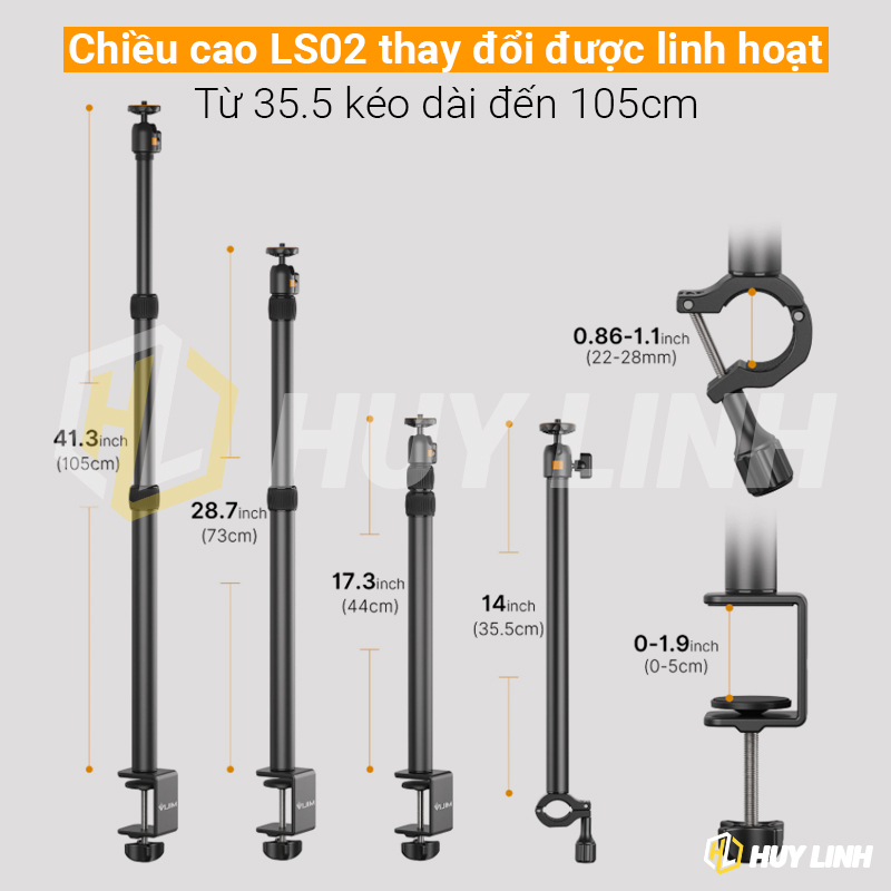 - Để Bàn với 14.5-37.3 "siêu dài phạm vi có thể điều chỉnh, và 3-Phần cần câu có thể Thu Duỗi điều chỉnh được cho máy ảnh/đèn/webcam, vv.