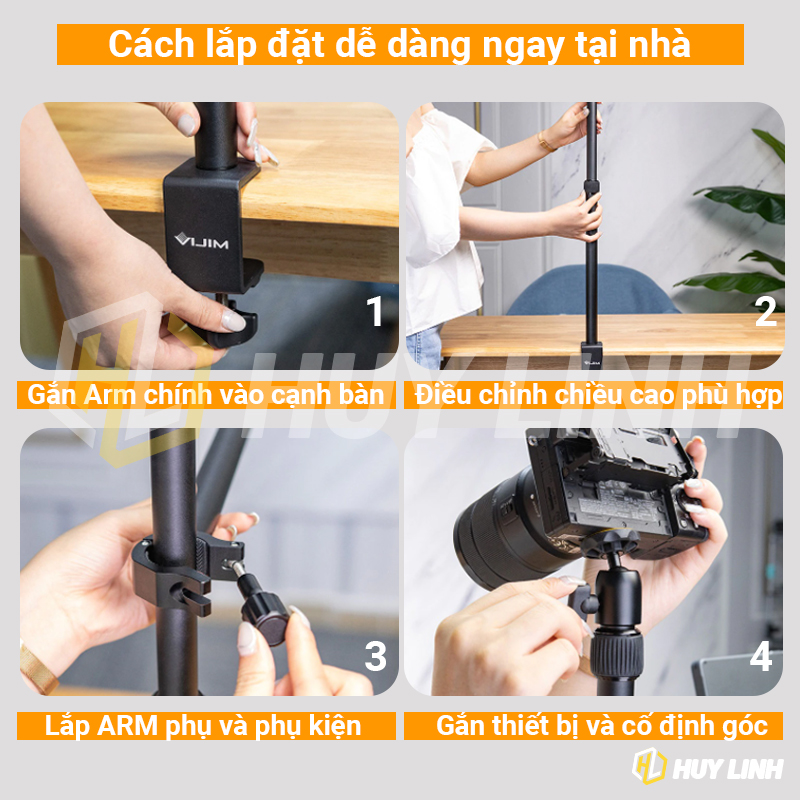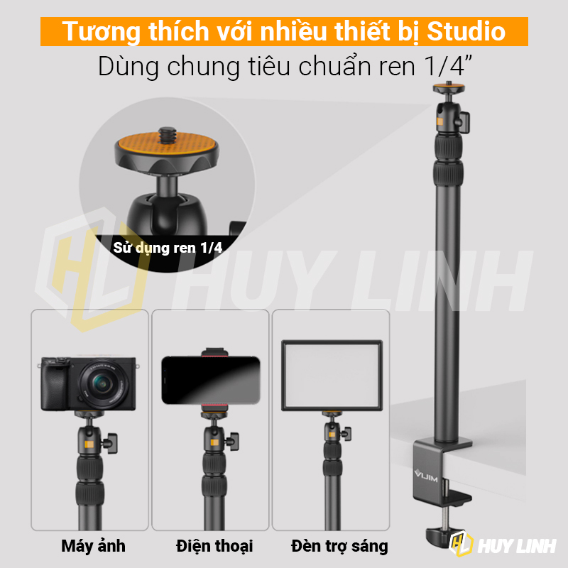 - Giá đỡ camera để bàn làm bằng nhôm hợp kim đủ ổn định cho bất kỳ thiết bị nào. 1/4 vít đầu bi đầu cho máy ảnh, webcam, Pannel ánh sáng, đèn vòng tròn, máy ảnh DSLR, đối với iPhone, Android,...