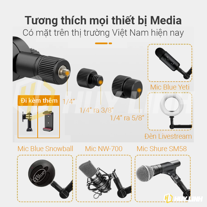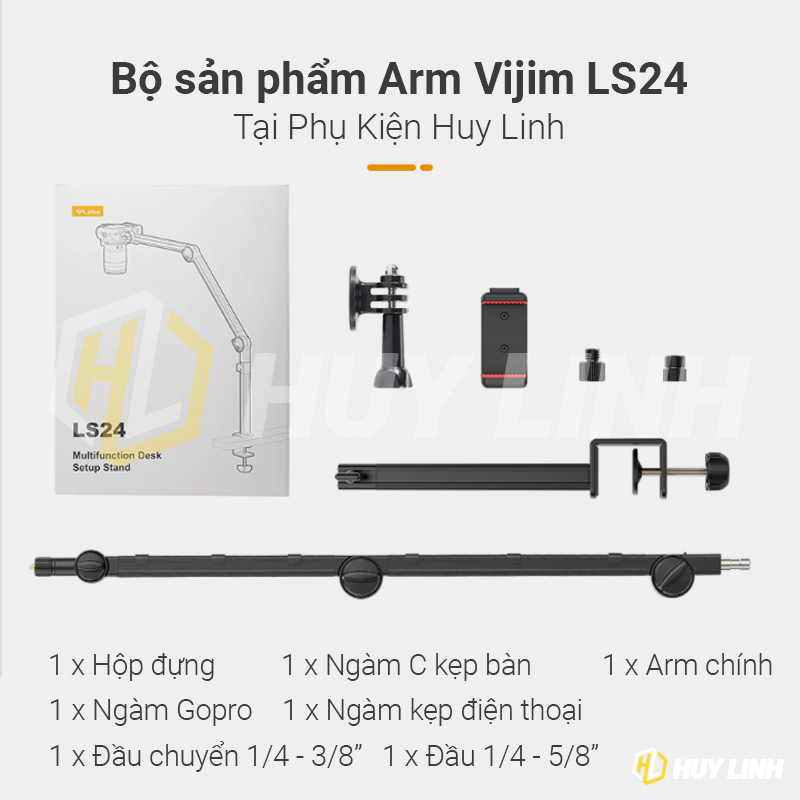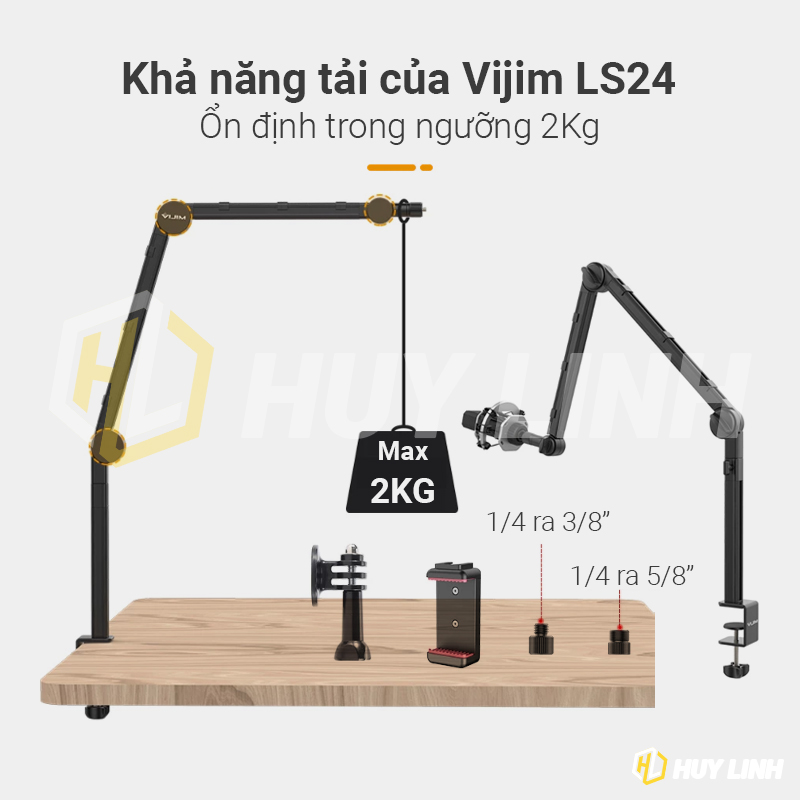 - Công dụng: Kẹp bàn gắn Microphone/Camera/Đèn trợ sáng