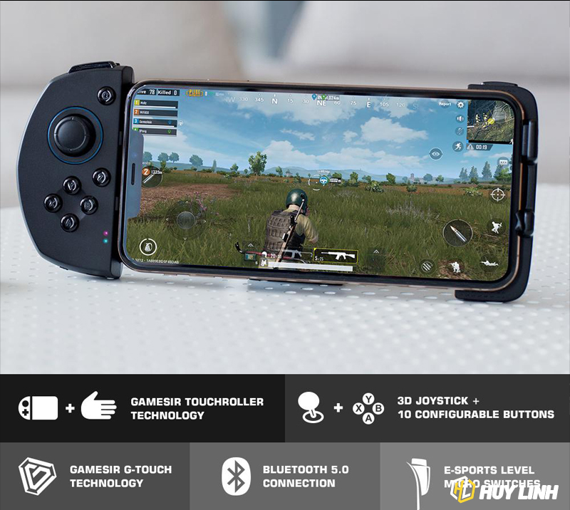 GameSir G6 là bộ điều khiển trò chơi được phát triển dành riêng cho các trò chơi di động kết hợp các lợi thế của bộ điều khiển tương tự thực tế và điều khiển màn hình cảm ứng. Bạn có thể sử dụng bộ điều khiển bên trái để di chuyển hoặc nhảy trong khi tập trung vào mục tiêu chính xác trên màn hình cảm ứng bên phải. Điều khiển bốn ngón tay, đi trước một bước. Thống trị trận chiến với sự kiểm soát hoàn toàn chính xác.