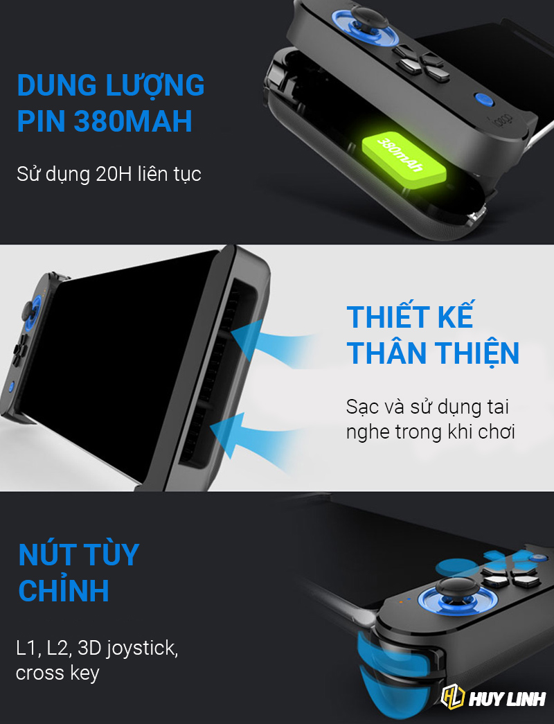 - Thời lượng dài: pin Li-ion 380mAh tích hợp, chơi trong 20 giờ sau một lần sạc