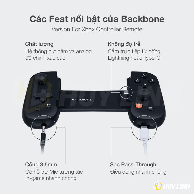 - Xbox REMOTE PLAY Backbone One Xbox Edition là phụ kiện controller chơi game đỉnh cao dành cho chiếc iPhone của bạn. Đảm bảo tương thích tốt với các nội dung giải trí của Xbox và cho trải nghiệm trọn vẹn.