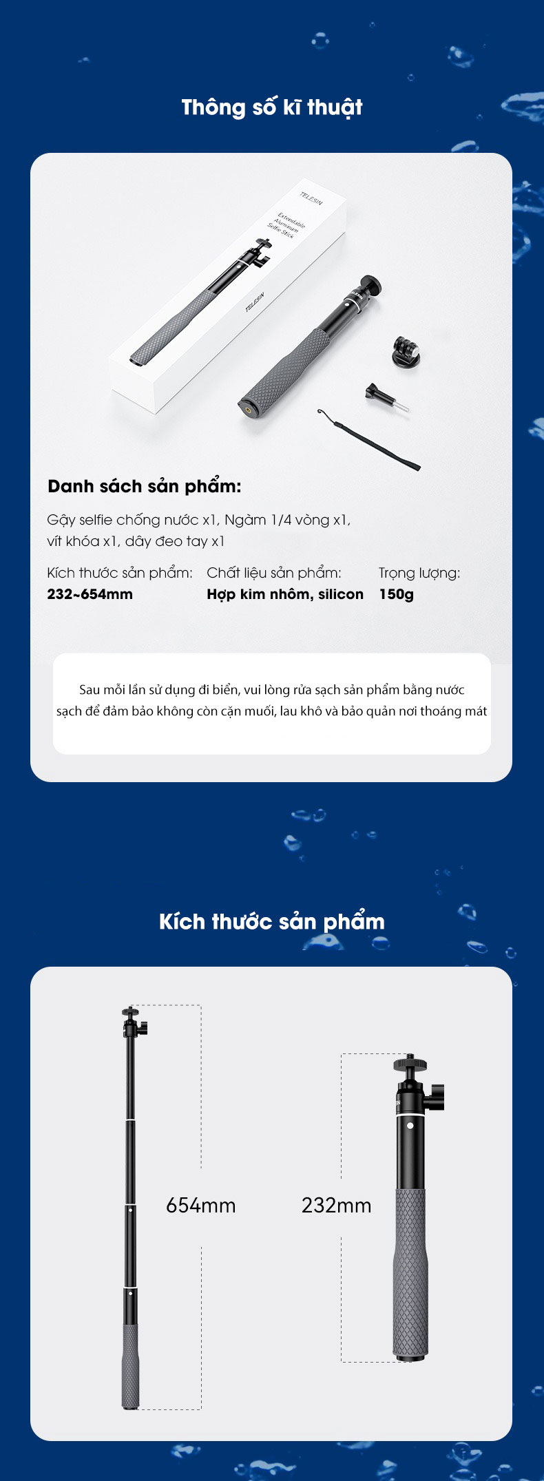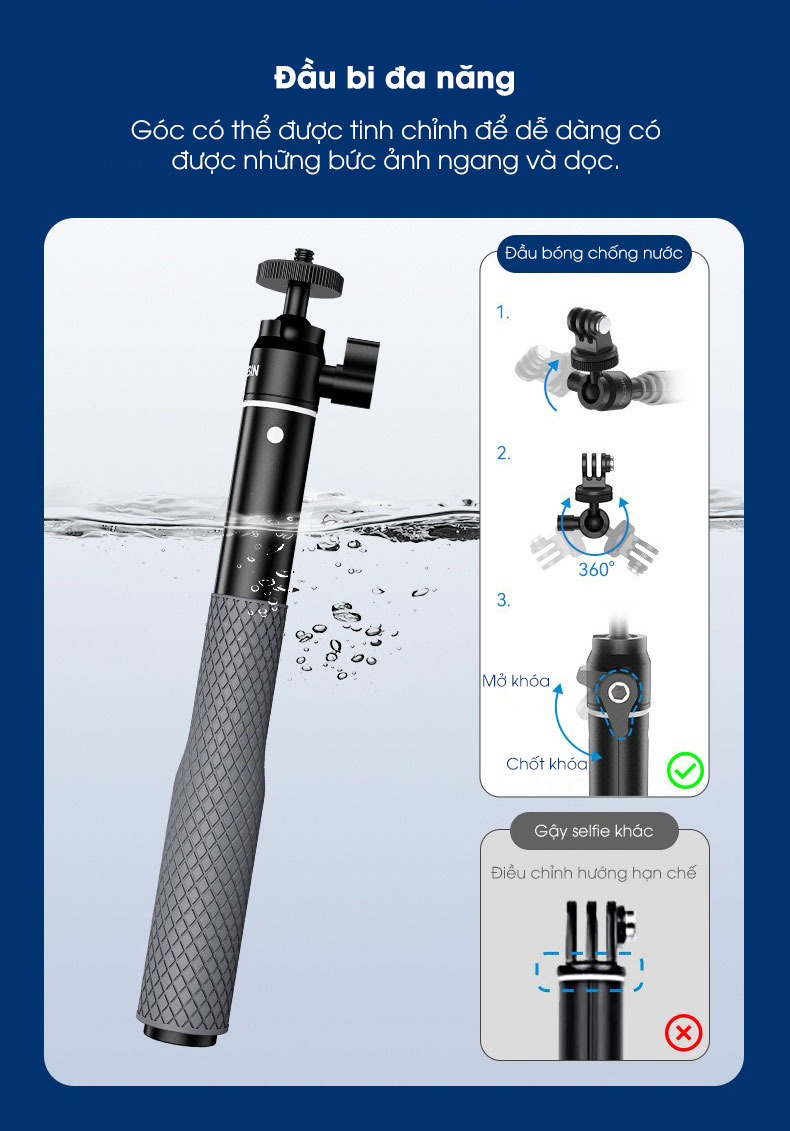 - 1 x Gậy selfie chống nước
