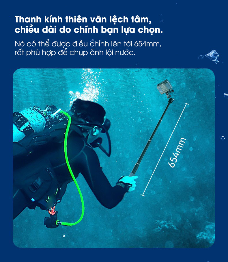 - Nó có thể được điều chỉnh lên tới 654mm, rất phù hợp để chụp ảnh lội nước.
