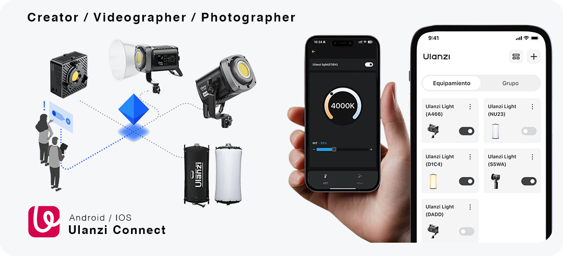 Ulanzi Connect giúp điều khiển đèn Ulanzi thông minh dễ dàng qua Bluetooth (Tạo Group). Bạn có thể điều chỉnh CCT, độ sáng, HUE/SAT và chọn hiệu ứng ánh sáng đa dạng (bi-color, RGB). Đồng thời, ứng dụng còn hỗ trợ nhóm nhiều đèn và có tính năng nhắc chữ (teleprompter) tích hợp, tối ưu làm việc.
