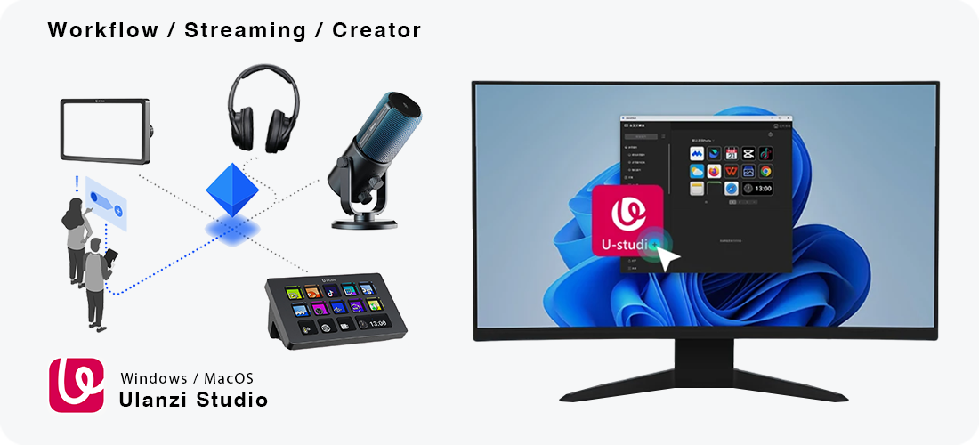 Ulanzi Studio tối ưu hóa quy trình làm việc, giúp chuyển cảnh livestream nhanh chóng, điều khiển ứng dụng (OBS, CapCut), và ánh sáng Ulanzi chỉ bằng một lần chạm, nâng cao hiệu suất sáng tạo nội dung. Tùy biến Custom nhanh chóng với hệ thống Macro gán Hotkey tối ưu Workflow.