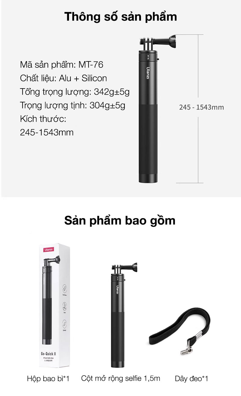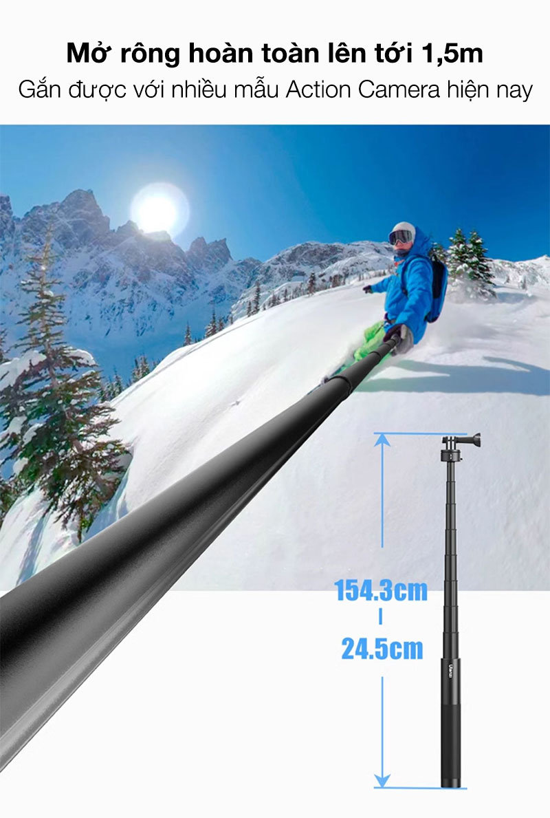 - Khả năng tương thích với nhiều thiết bị: Tương thích với bộ chuyển đổi GoPro, máy ảnh toàn cảnh, máy ảnh hành động và kẹp điện thoại di động.