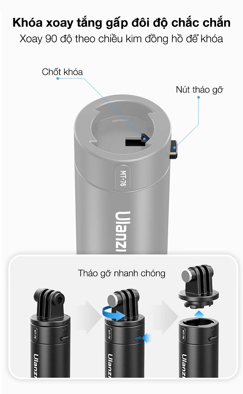 - Ulanzi MT76 giúp cho cảnh quay lớn và người sử dụng tạo góc nhìn một cách dễ dàng hơn.