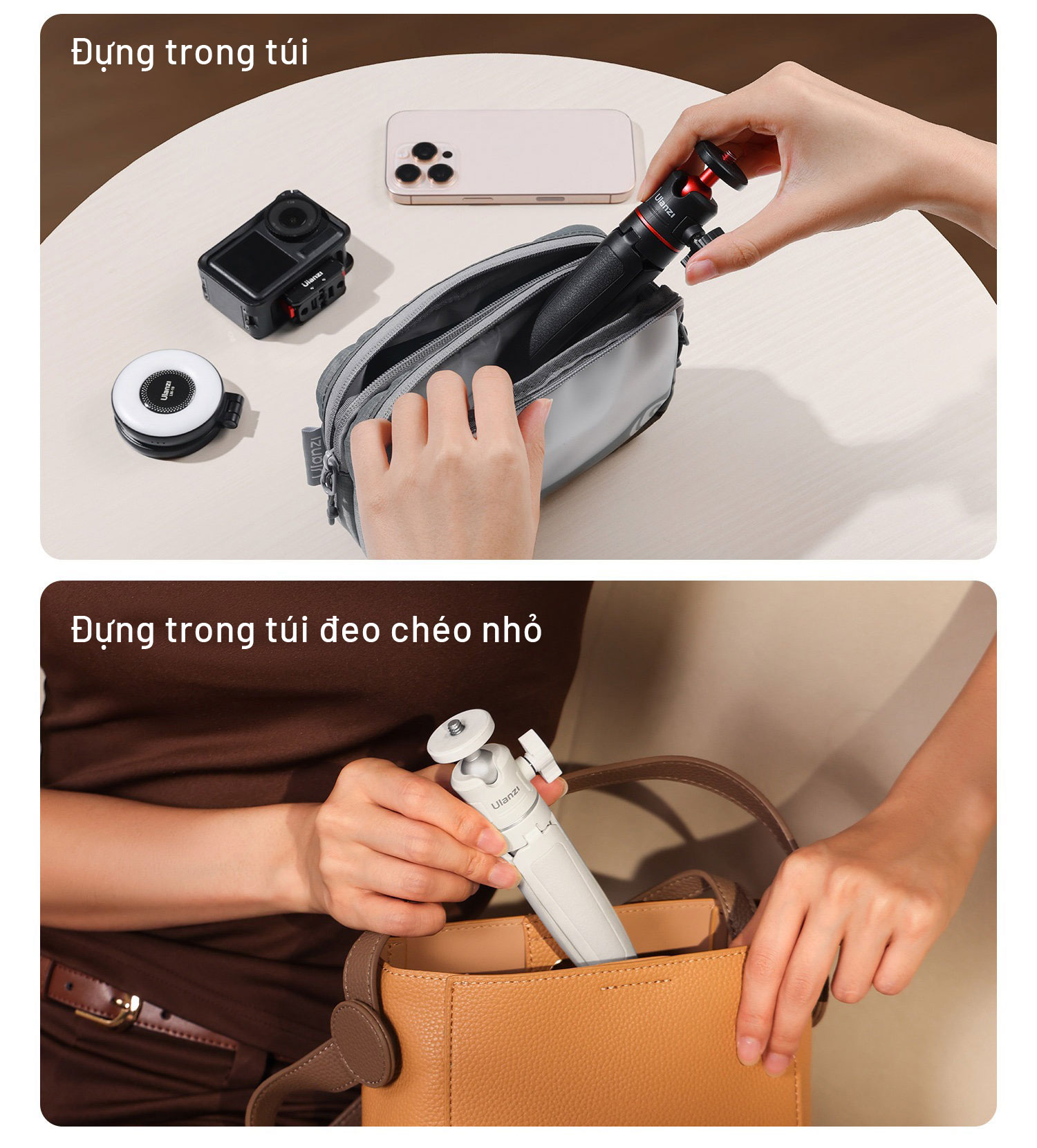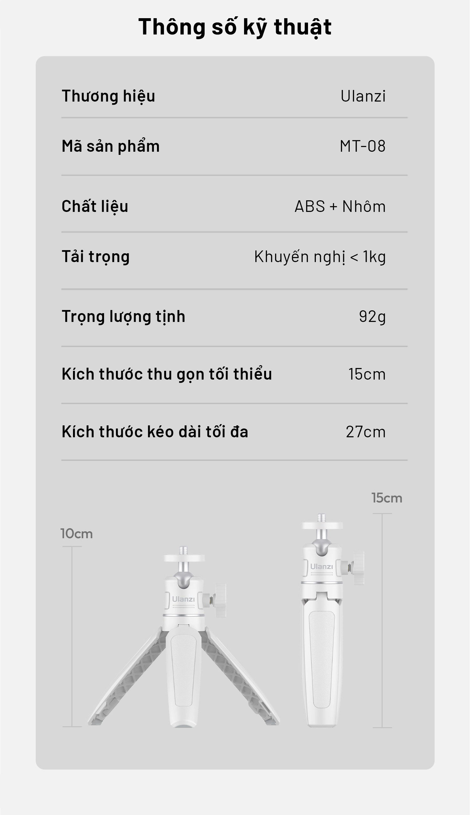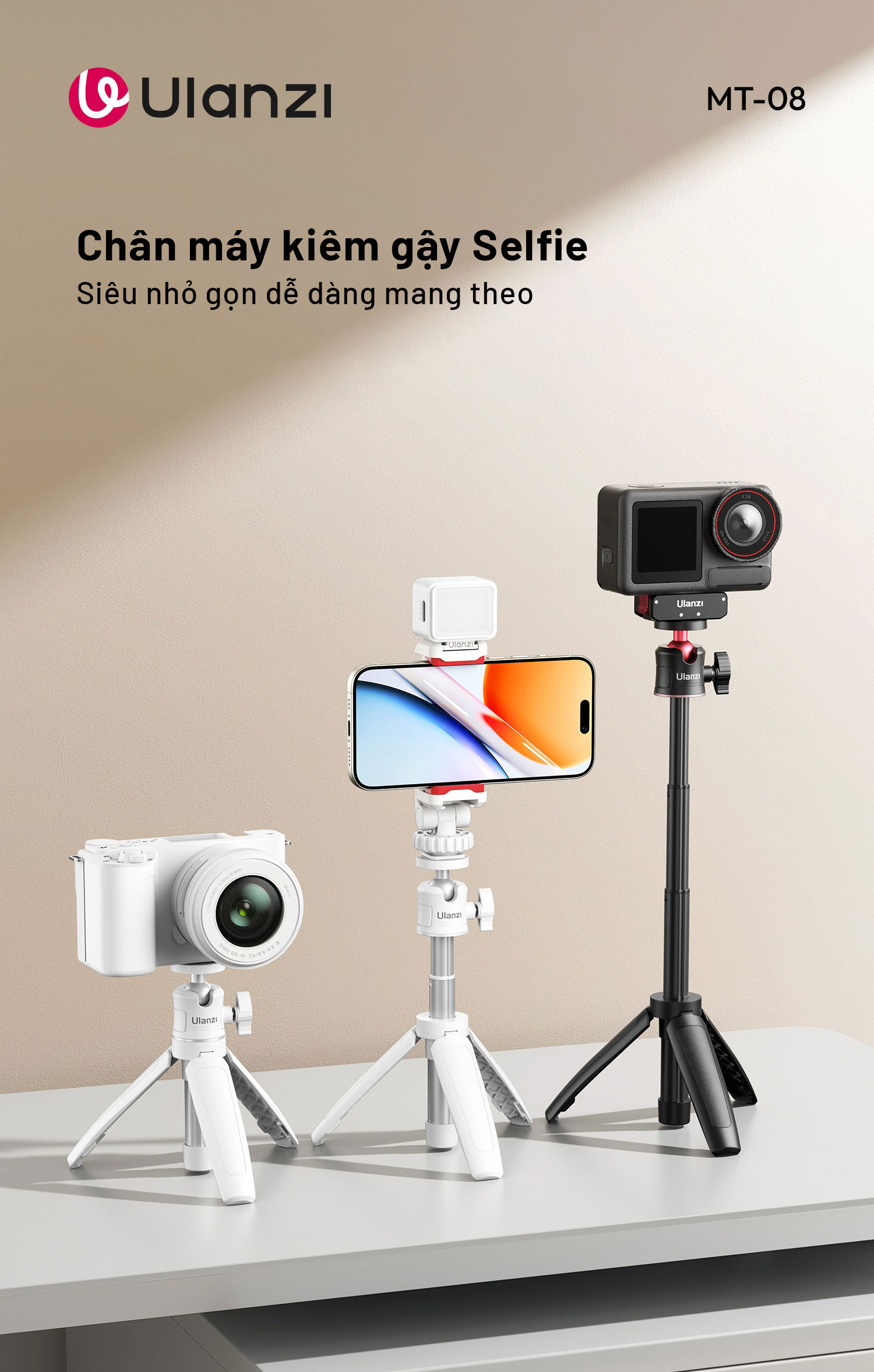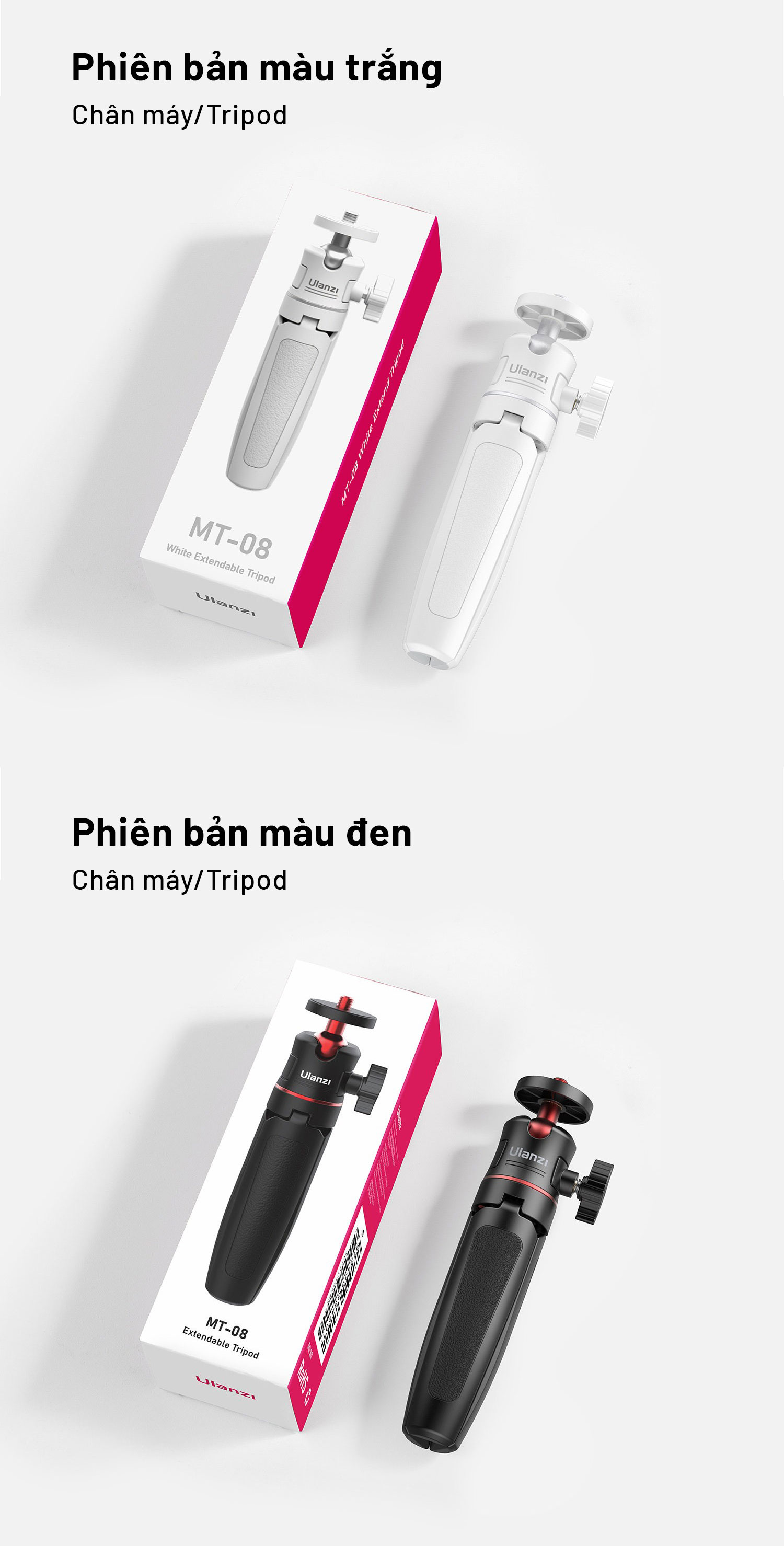 - Kít 2: Bao gồm tripod Ulanzi MT08 + Kẹp điện thoại Ulanzi ST07