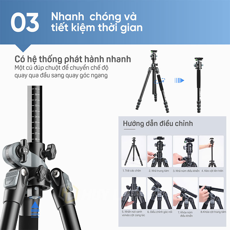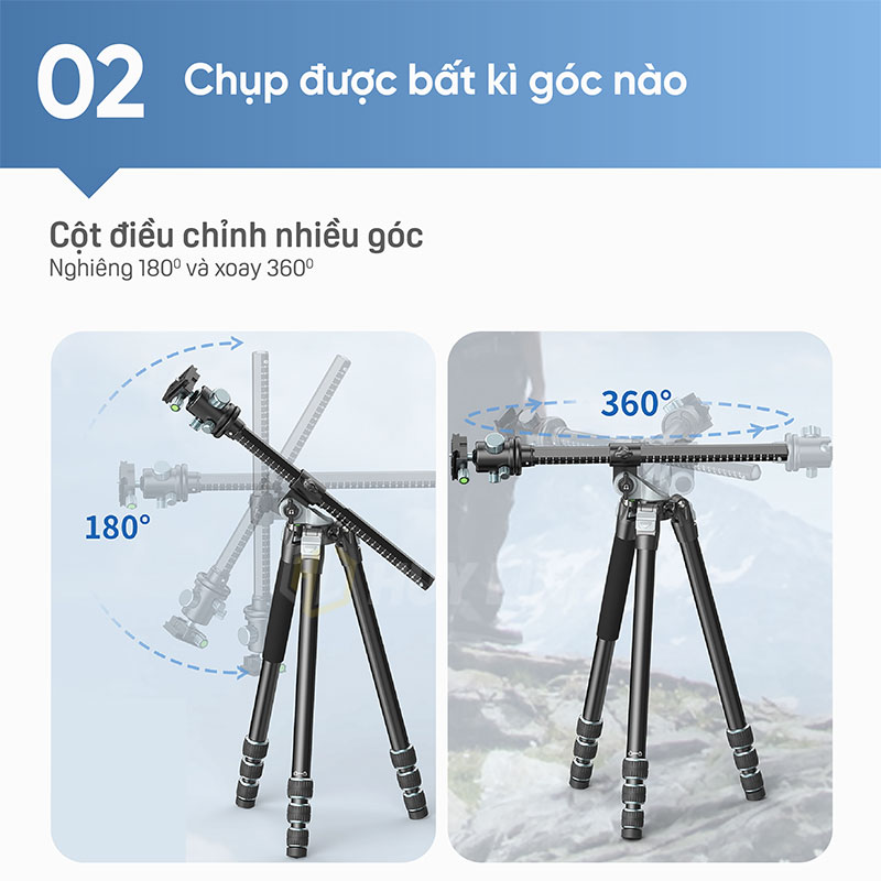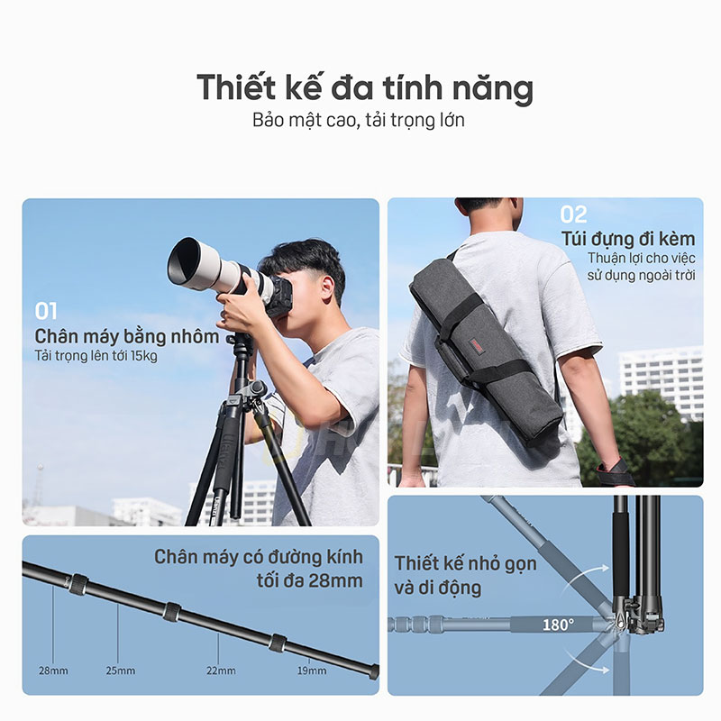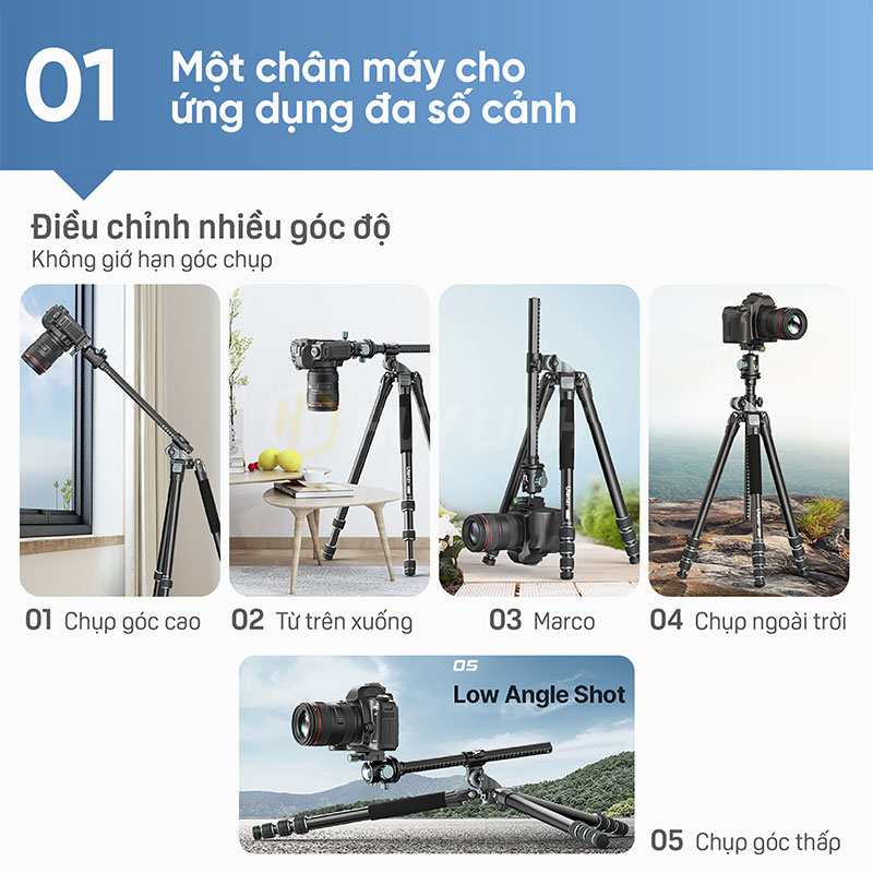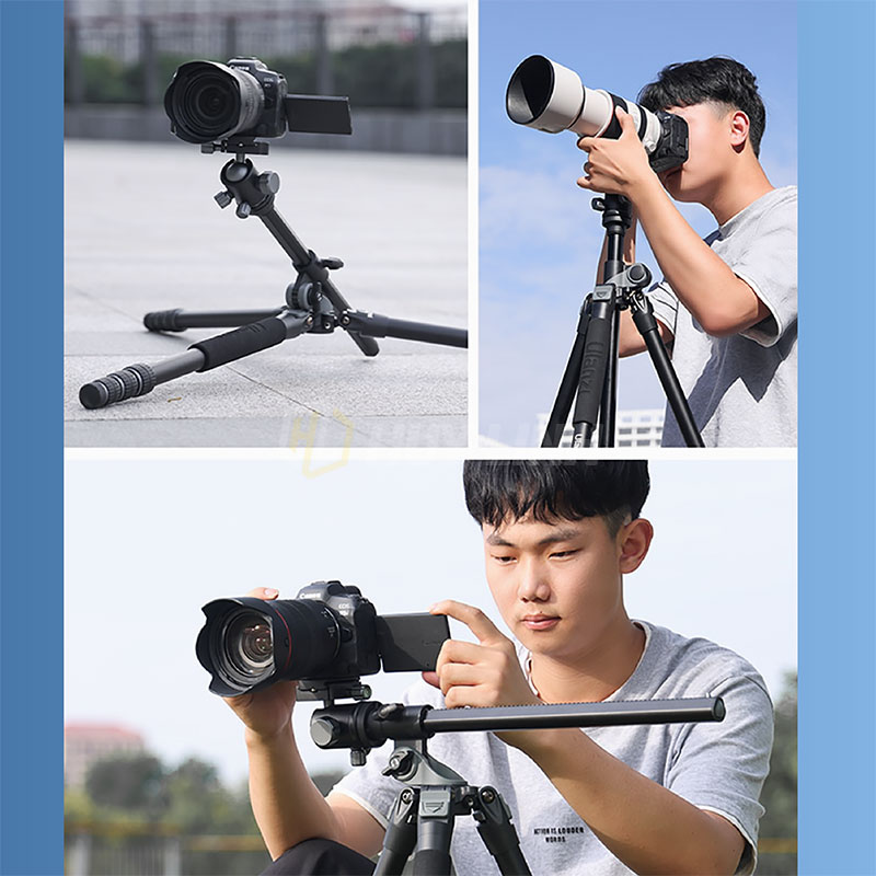 Chân tripod cho máy ảnh cao cấp Ulanzi MT-59 đa năng dễ dàng điều chỉnh góc quay không giới hạn từ chụp toàn cảnh, quay topshot từ trên xuống, chụp macro, chụp ngoài trời hay chụp góc thấp đều được. Đầu ballhead xoay 360 độ tiện lợi cùng thiết kế độc đáo và linh hoạt trong việc quay chụp sản phẩm. Chân máy ảnh Ulanzi MT-59 sẽ là trở thủ đặc lực đáp ứng mọi nhu cầu quay chụp của người dùng.