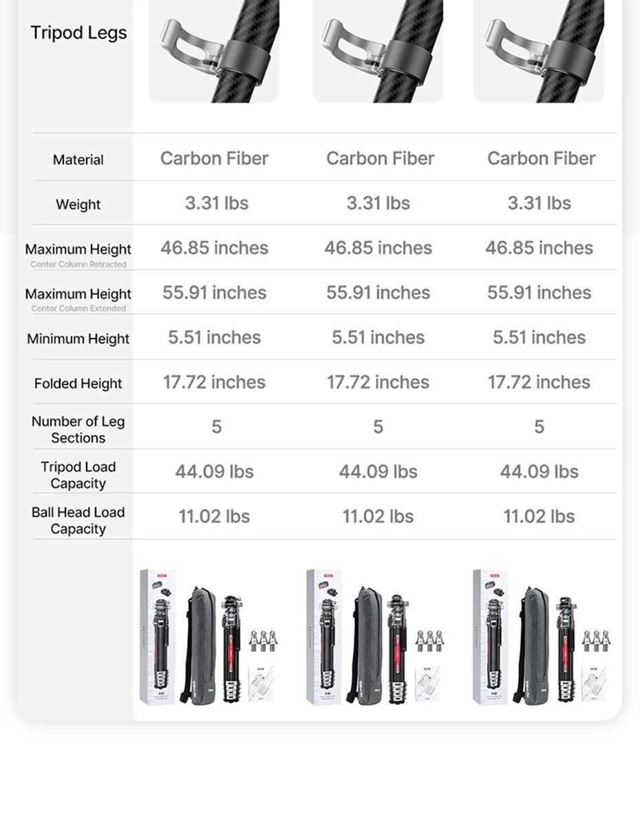- Khả năng chịu tải của chân máy: 44,09Ibs