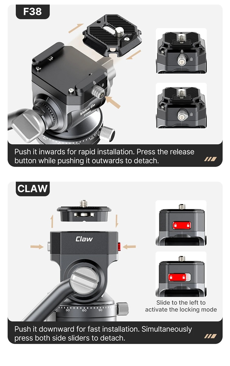 - Đầu chân máy: Arca-Swiss/F38/CLAW